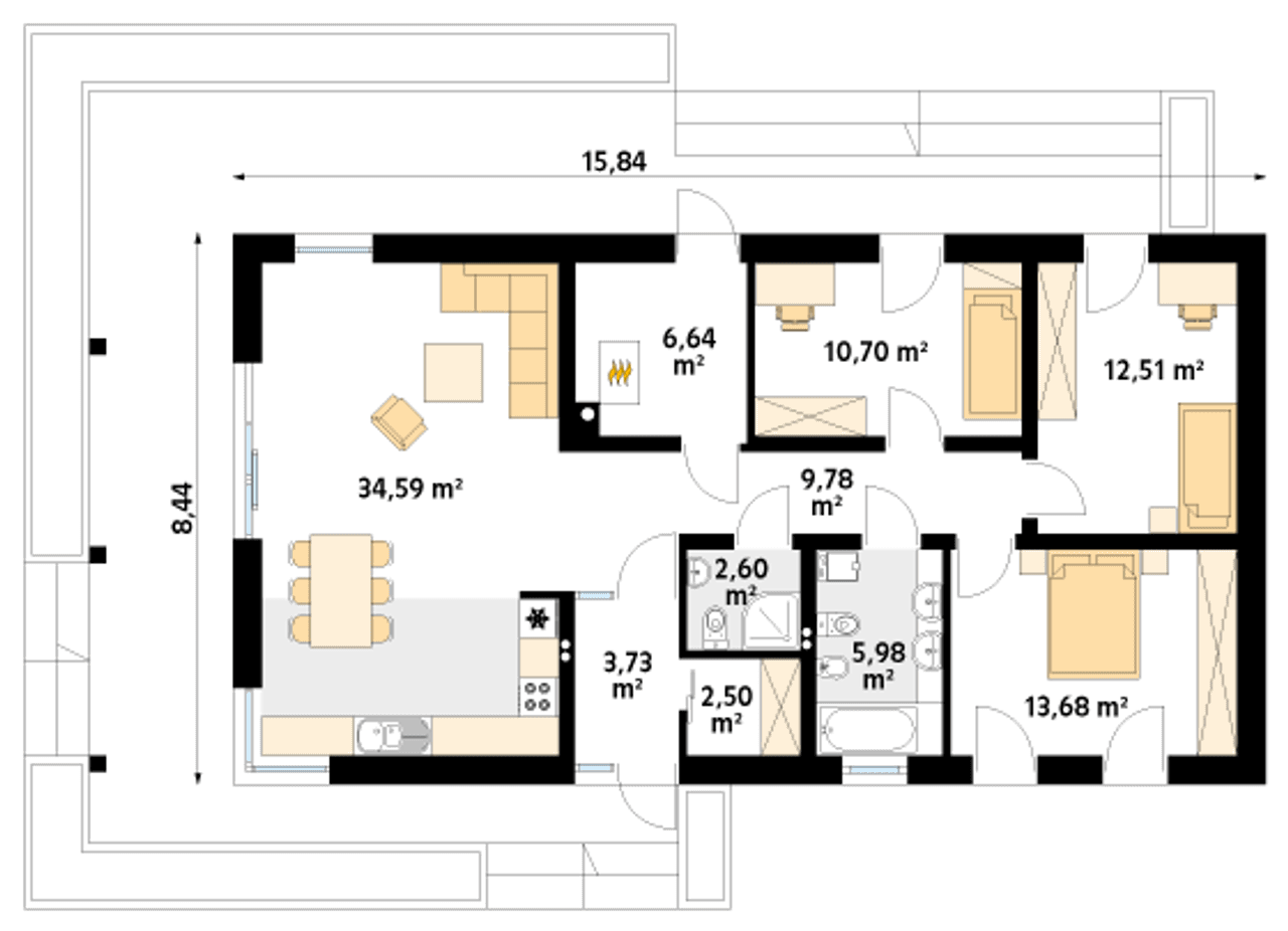 Szerokość budynku 15.84 m |