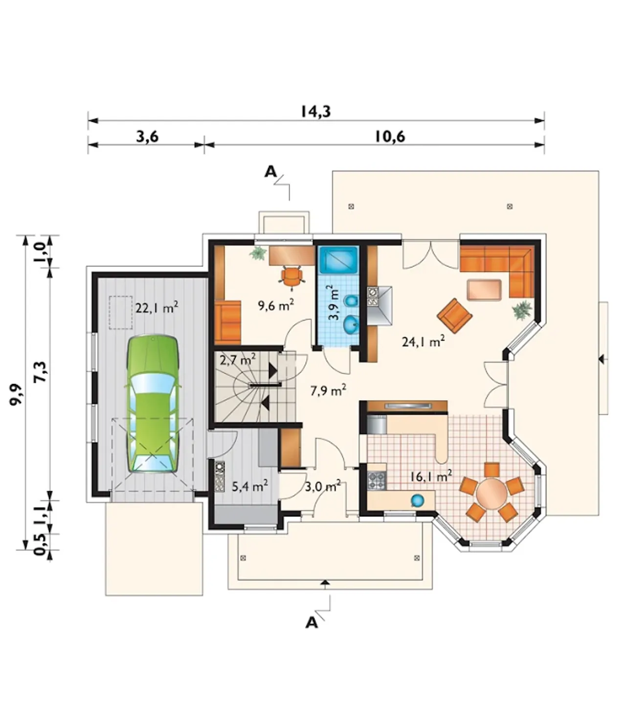 1. Garaż | 22,00 m² |