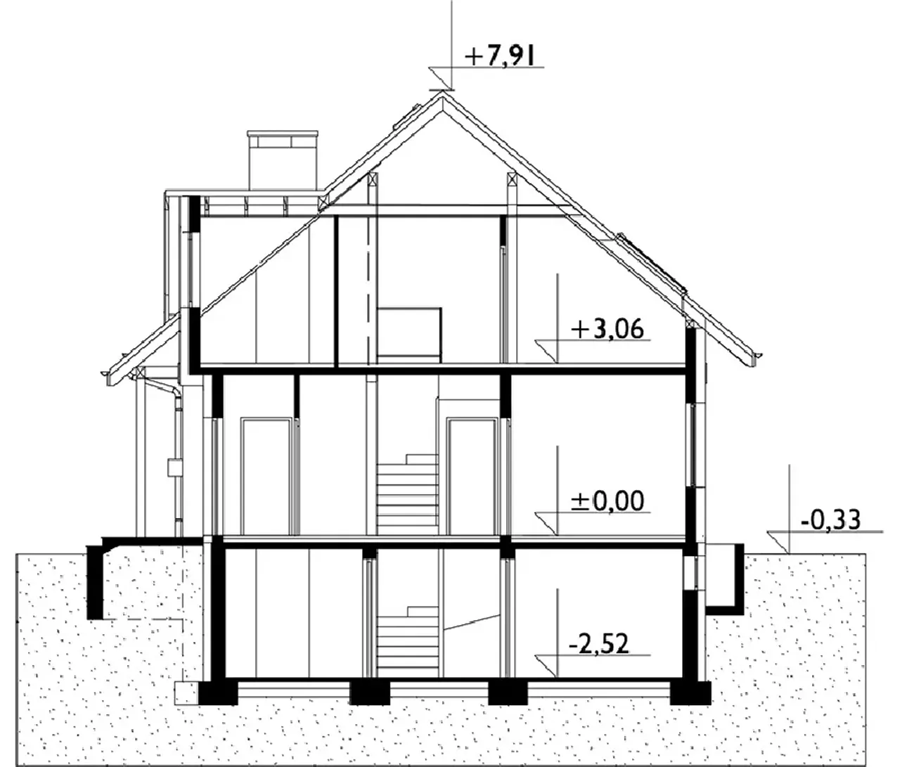 - przekroje - pokazują wszystkie elementy budynku po przecięciu go wzdłuż lub w poprzek od dachu do fundamentów tj. warstwy podłogi, stropów i dachu