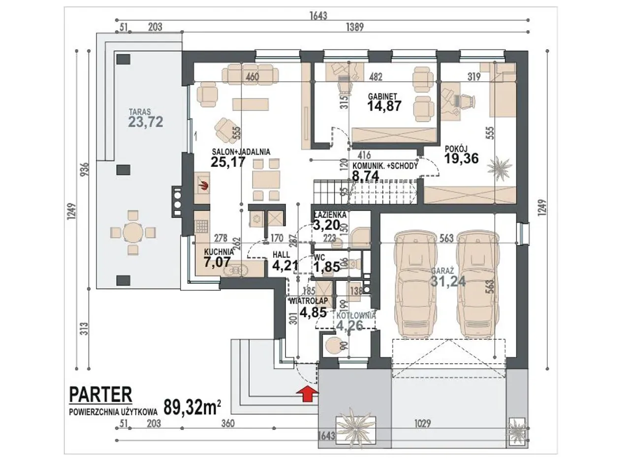 Wypełnij formularz i otrzymaj rysunki w pdf z dokładnymi wymiarami budynku i pomieszczeń (długość, szerokość, wysokość) dla projektu Maja II N 2G+
