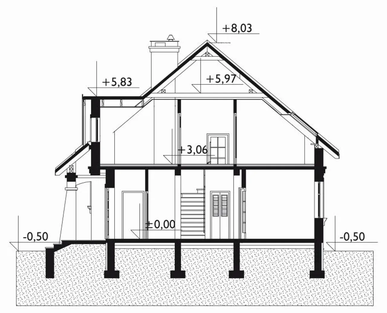 - przekroje - pokazują wszystkie elementy budynku po przecięciu go wzdłuż lub w poprzek od dachu do fundamentów tj. warstwy podłogi, stropów i dachu
