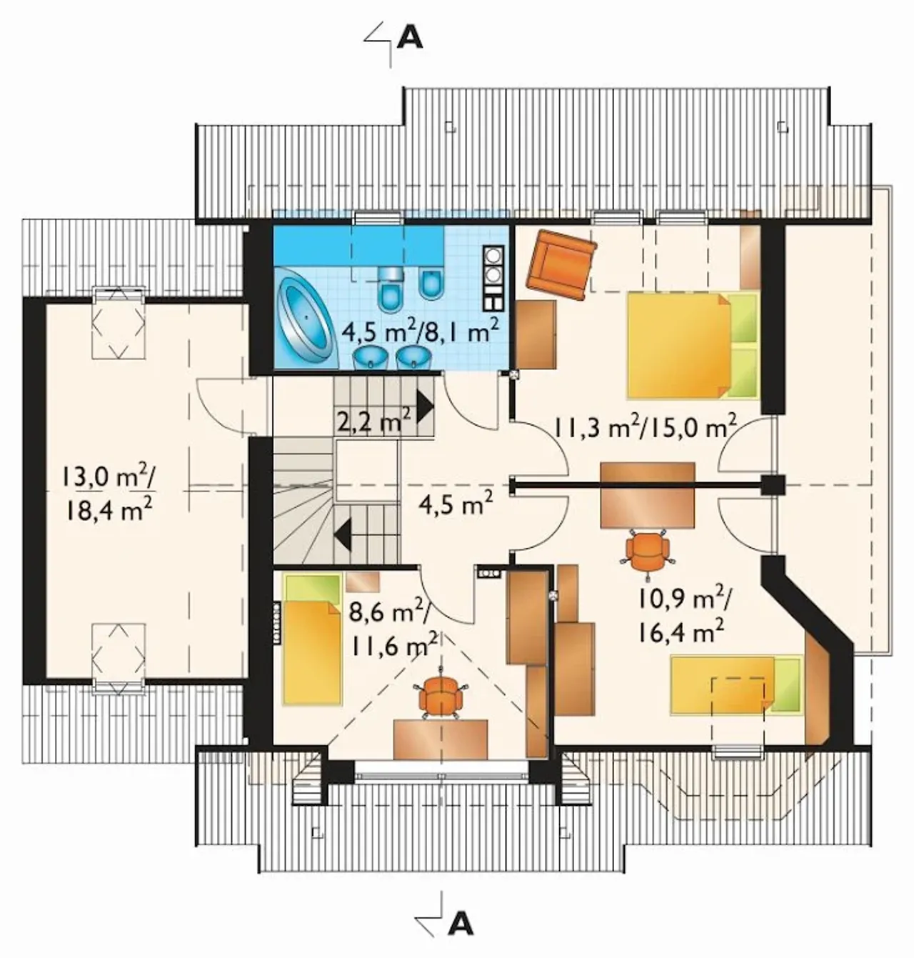 - elewacje - pokazują dokładny wygląd domu od frontu, z tyłu i z boków
