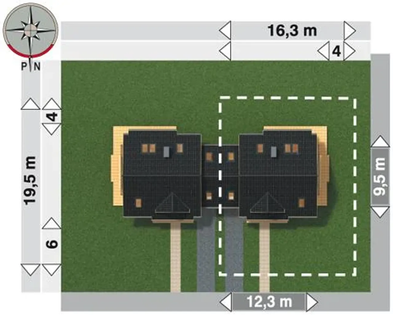 Wypełnij formularz i otrzymaj rysunki w pdf z dokładnymi wymiarami budynku i pomieszczeń (długość, szerokość, wysokość) dla projektu Majka Duo