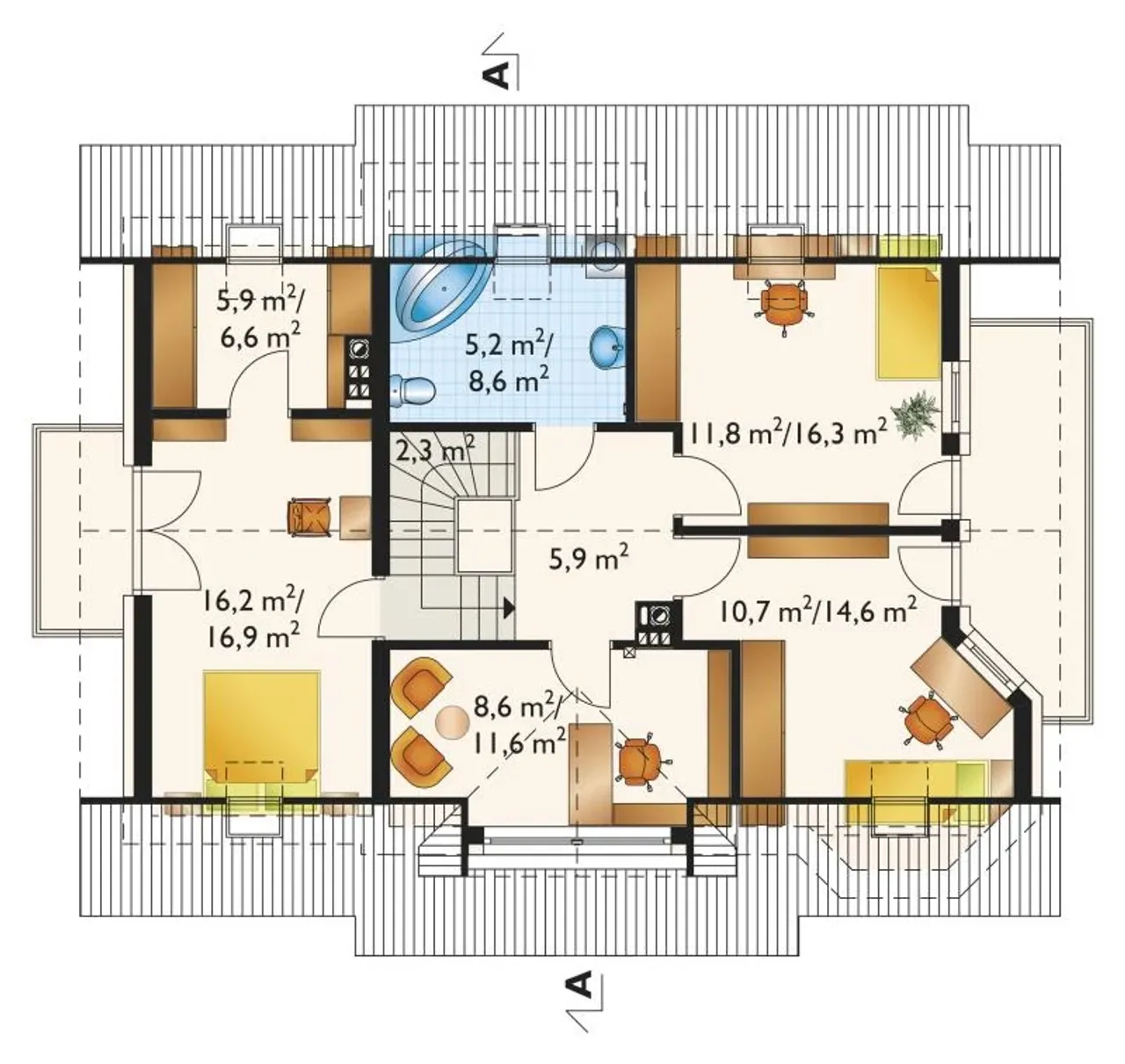 - elewacje - pokazują dokładny wygląd domu od frontu, z tyłu i z boków