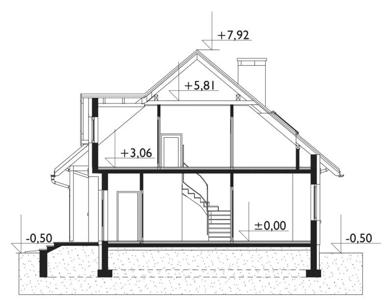 - przekroje - pokazują wszystkie elementy budynku po przecięciu go wzdłuż lub w poprzek od dachu do fundamentów tj. warstwy podłogi, stropów i dachu