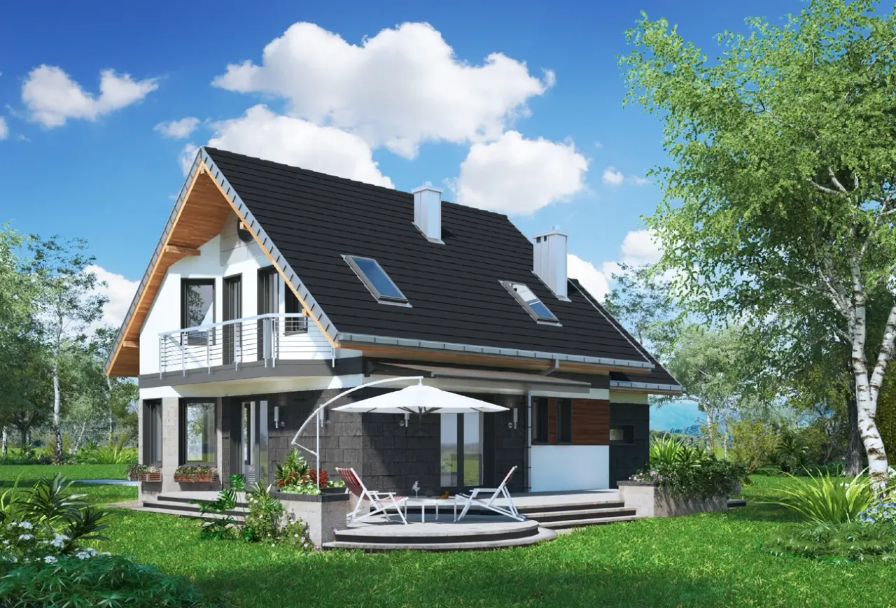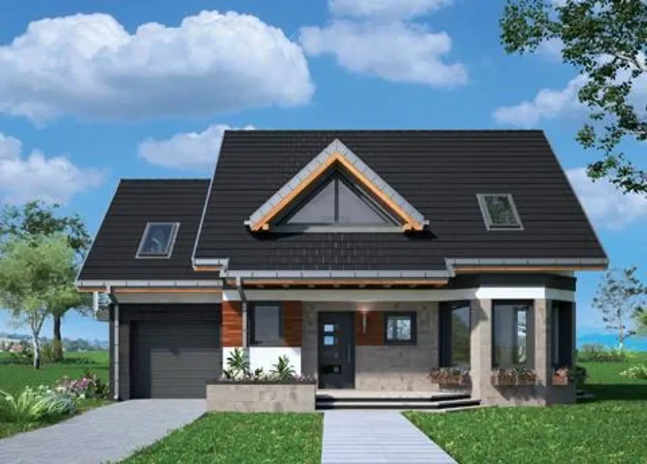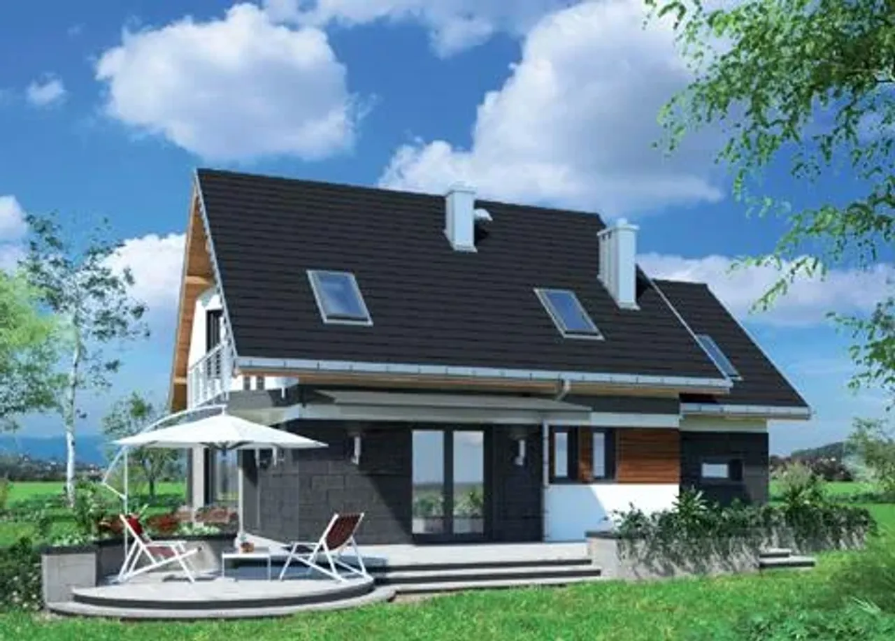 - elewacje - pokazują dokładny wygląd domu od frontu, z tyłu i z boków