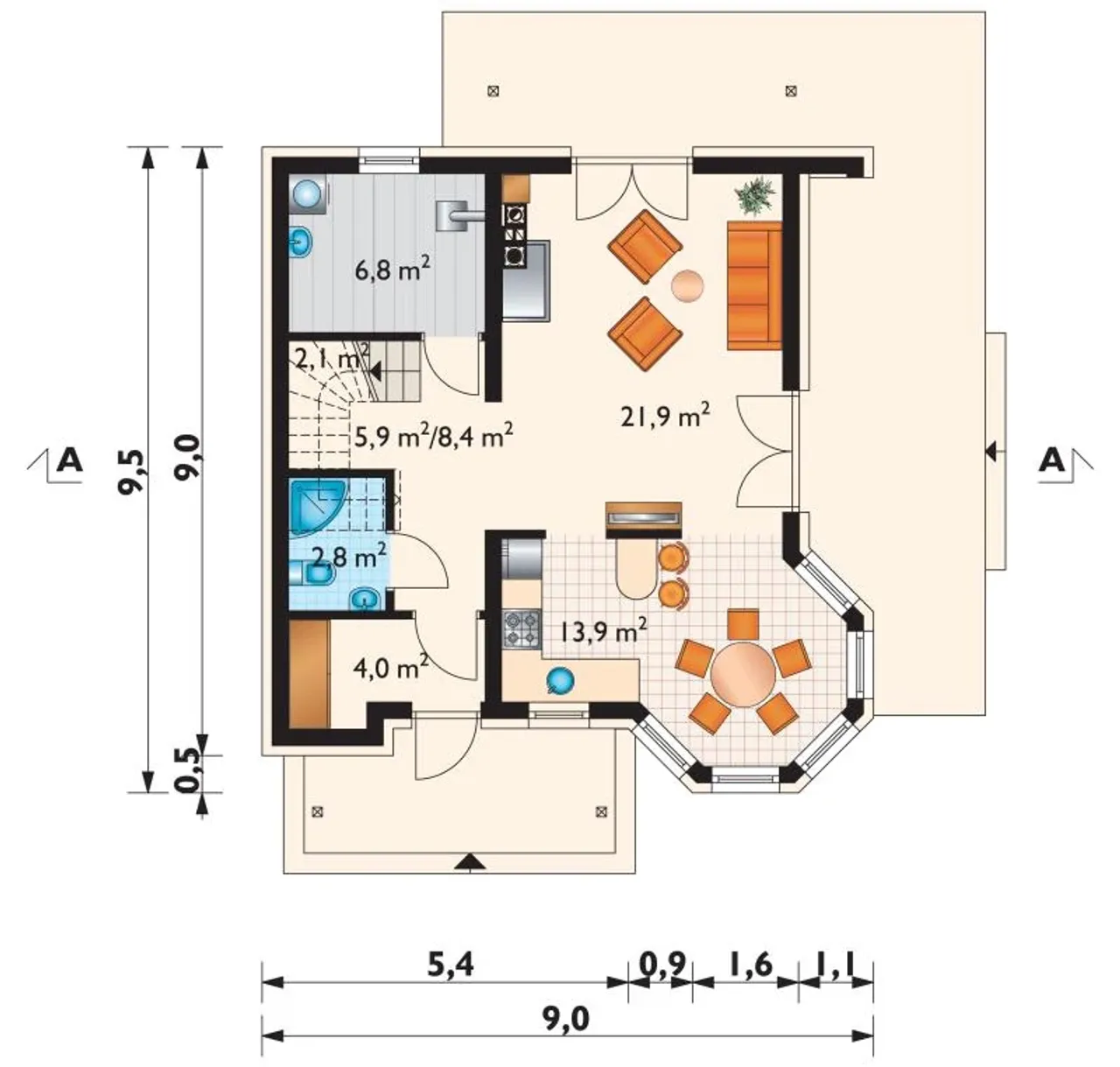 Szerokość budynku 9.5 m |