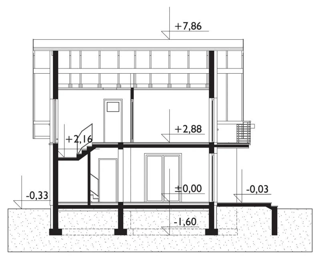 - przekroje - pokazują wszystkie elementy budynku po przecięciu go wzdłuż lub w poprzek od dachu do fundamentów tj. warstwy podłogi, stropów i dachu