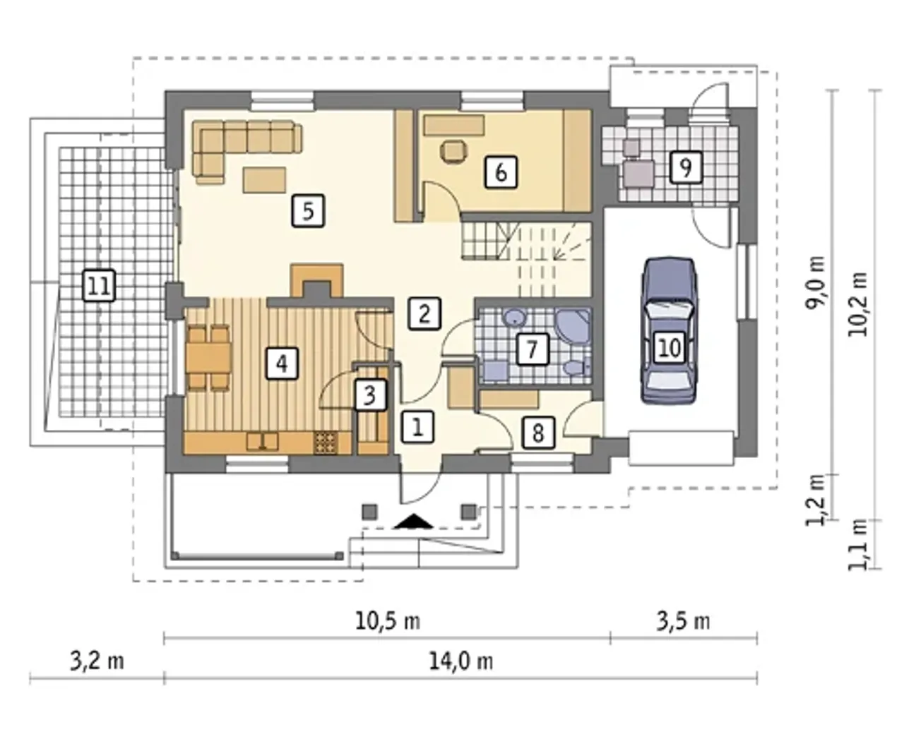 Wypełnij formularz i otrzymaj rysunki w pdf z dokładnymi wymiarami budynku i pomieszczeń (długość, szerokość, wysokość) dla projektu Małe ranczo - C358