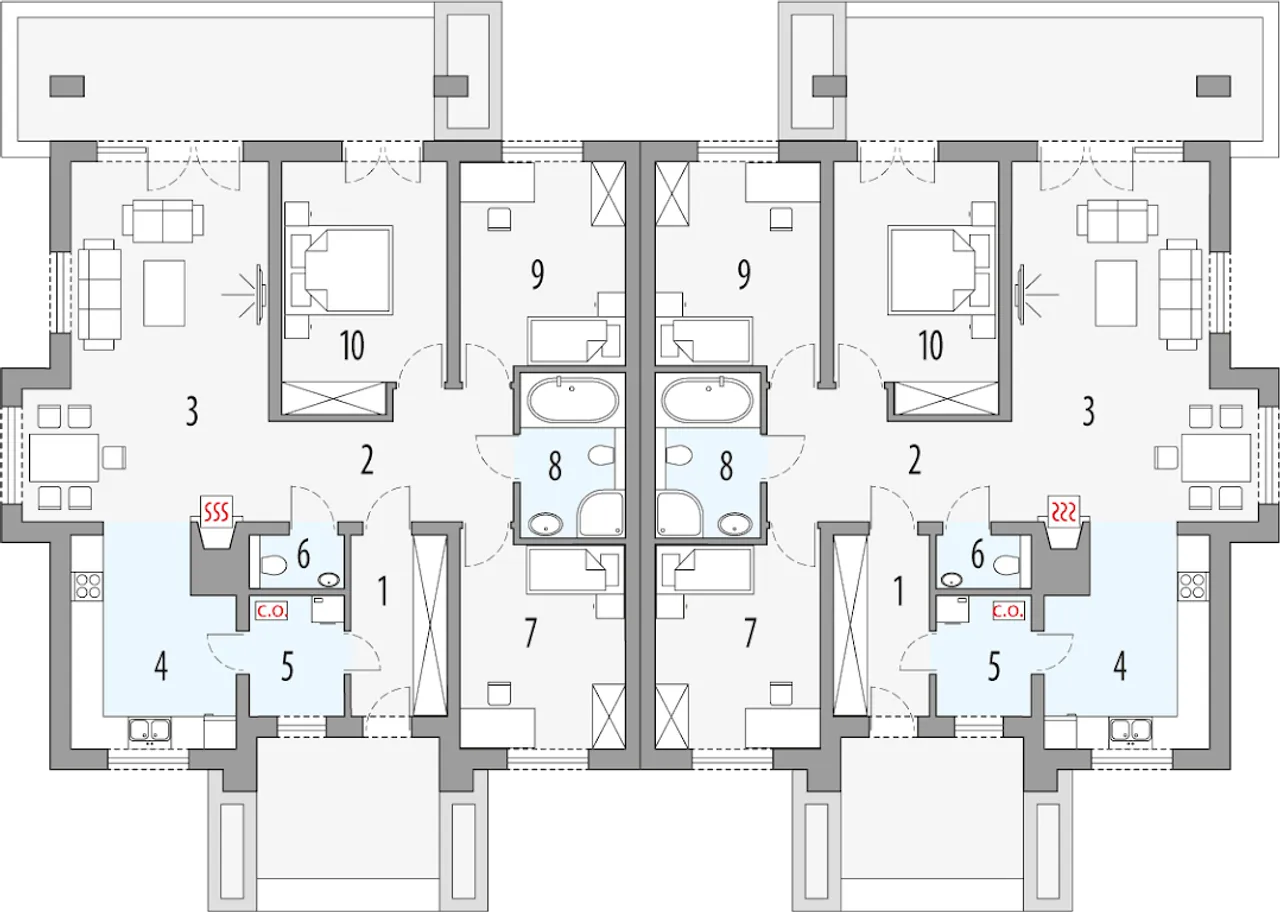 Rzuty gotowego projektu domu Małgosia A - bliźniak L.LL