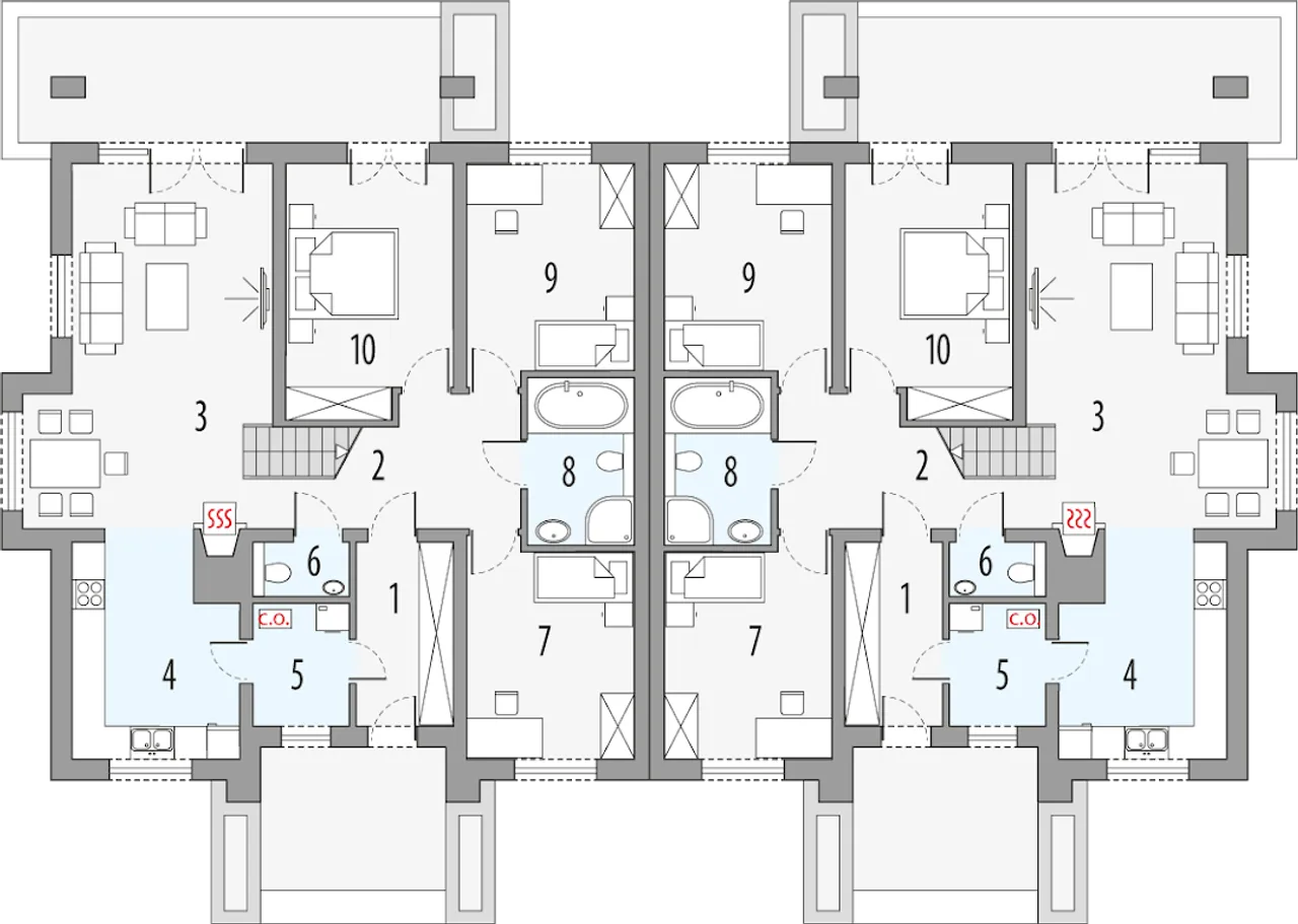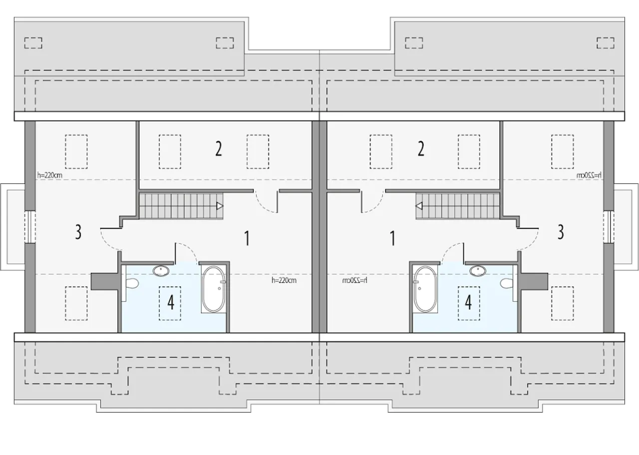 Rzuty gotowego projektu domu Małgosia D - bliźniak L.LL