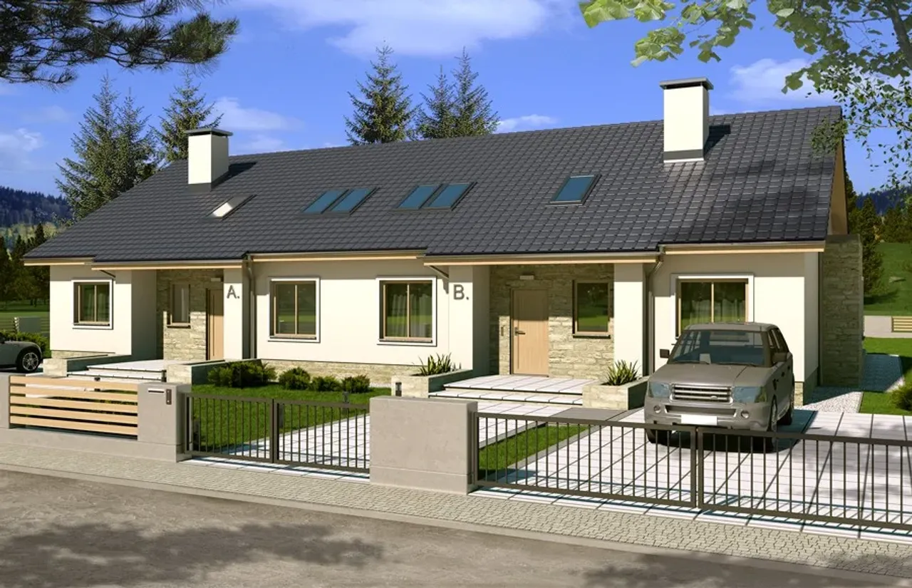 Wśród wielu projektów, które przeglądaliśmy, "Małgosia D - segment lewy" zdaje się odpowiedzieć na wszystkie unowocześnione oczekiwania współczesnej rodziny. Co szczególnie uderza, to idealne połączenie elegancji i funkcjonalności, które rzadko współistnieje w jednym projekcie. Design zewnętrzny łączy tradycyjne elementy z nowoczesnymi akcentami, tworząc ponadczasową fasadę. Wewnątrz, przemyślany rozkład pomieszczeń zapewnia przestrzeń zarówno do wspólnych, rodzinnnych aktywności, jak i indywidualnego wyciszenia. Ciekawe jest to, jak projekt ten harmonijnie odpowiada na potrzeby życia społecznego i prywatność. Naturalne światło, które ma swobodny dostęp do większości pomieszczeń, potęguje wrażenie otwartości i przestronności, co znacząco podnosi komfort życia. Pełen podziwu jestem dla tego projektu, który wydaje się być stworzony z myślą o tych, którzy pragną równowagi pomiędzy nowoczesnością a ciepłem domowego ogniska.