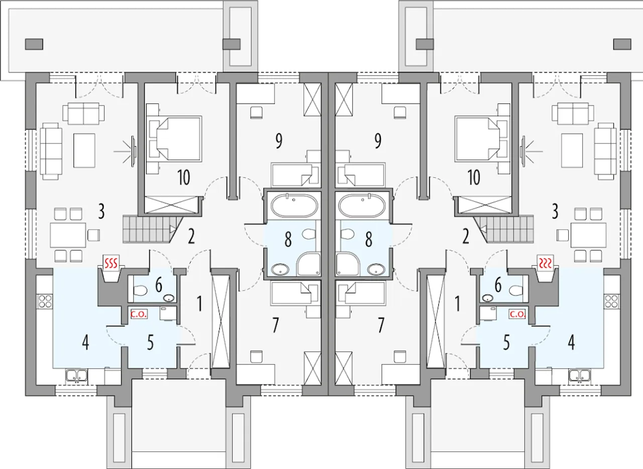 Zachwycający projekt domu Małgosia DD - bliźniak L.LL to prawdziwy klejnot wśród współczesnych realizacji architektonicznych, idealnie harmonizujący funkcjonalność z elegancką estetyką. Jego wyjątkowa forma bliźniaka pozwala na wygodną koegzystencję dwóch rodzin, zachowując przy tym intymność i niezależność każdej z nich. Zmysłowe linie architektoniczne i przemyślany rozkład pomieszczeń sprawiają, że życie w takim domu to czysta przyjemność. Szczególnie urzeka przestronność i świetliste wnętrza, które stwarzają poczucie ciepła i domowego ogniska. To idealne rozwiązanie dla tych, którzy marzą o eleganckim, ale jednocześnie przytulnym i funkcjonalnym miejscu dla swojej rodziny. Projekt Małgosia DD - bliźniak L.LL to zdecydowanie wybór, który zapewni nie tylko komfortowe życie, ale też stanie się źródłem dumy i zadowolenia.