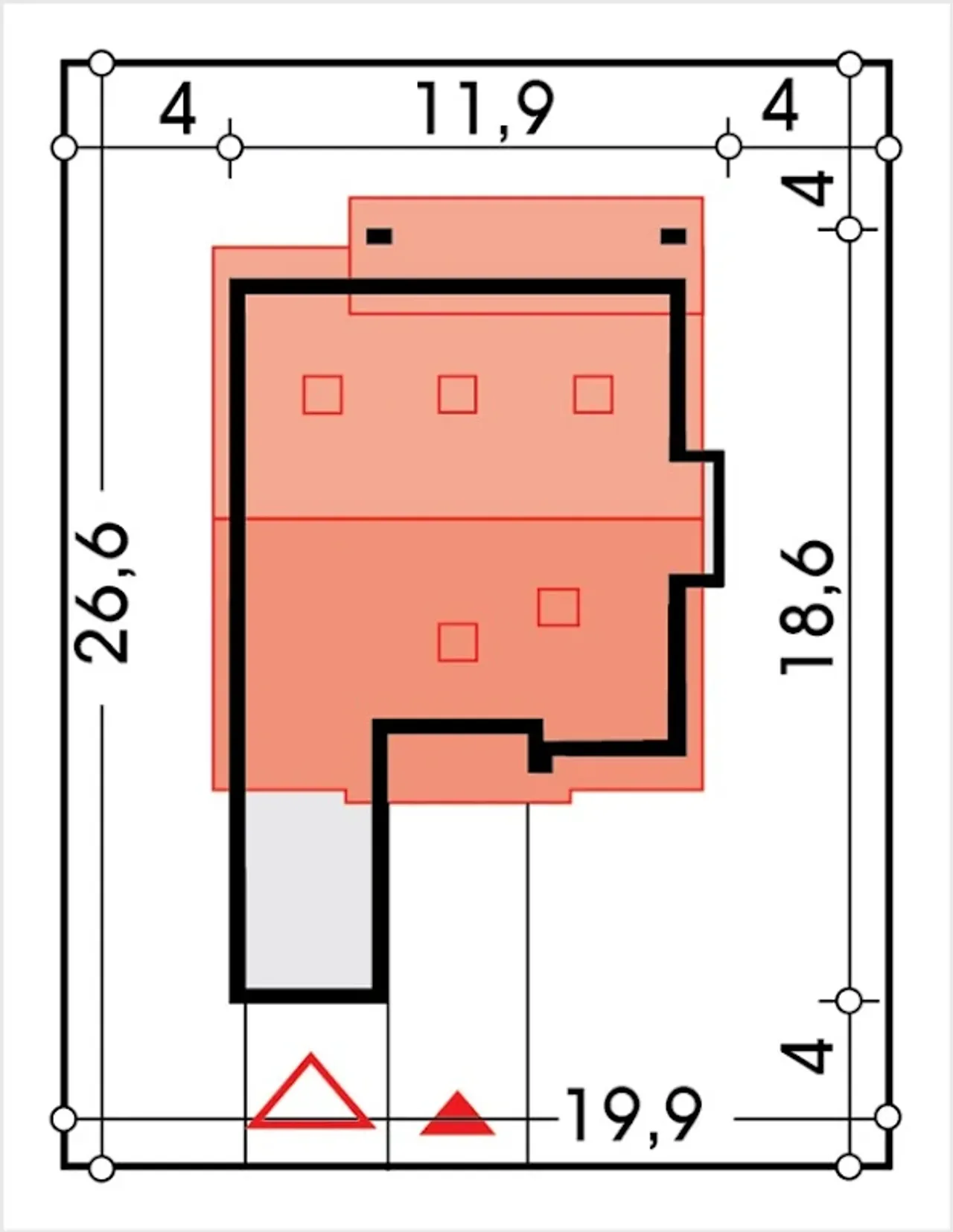 Wypełnij formularz i otrzymaj rysunki w pdf z dokładnymi wymiarami budynku i pomieszczeń (długość, szerokość, wysokość) dla projektu Małgosia E garaż