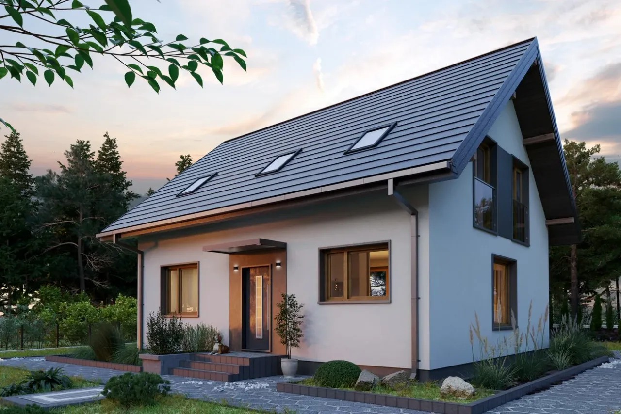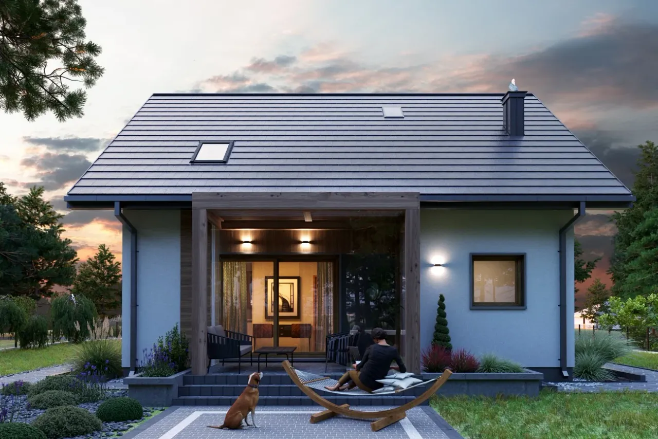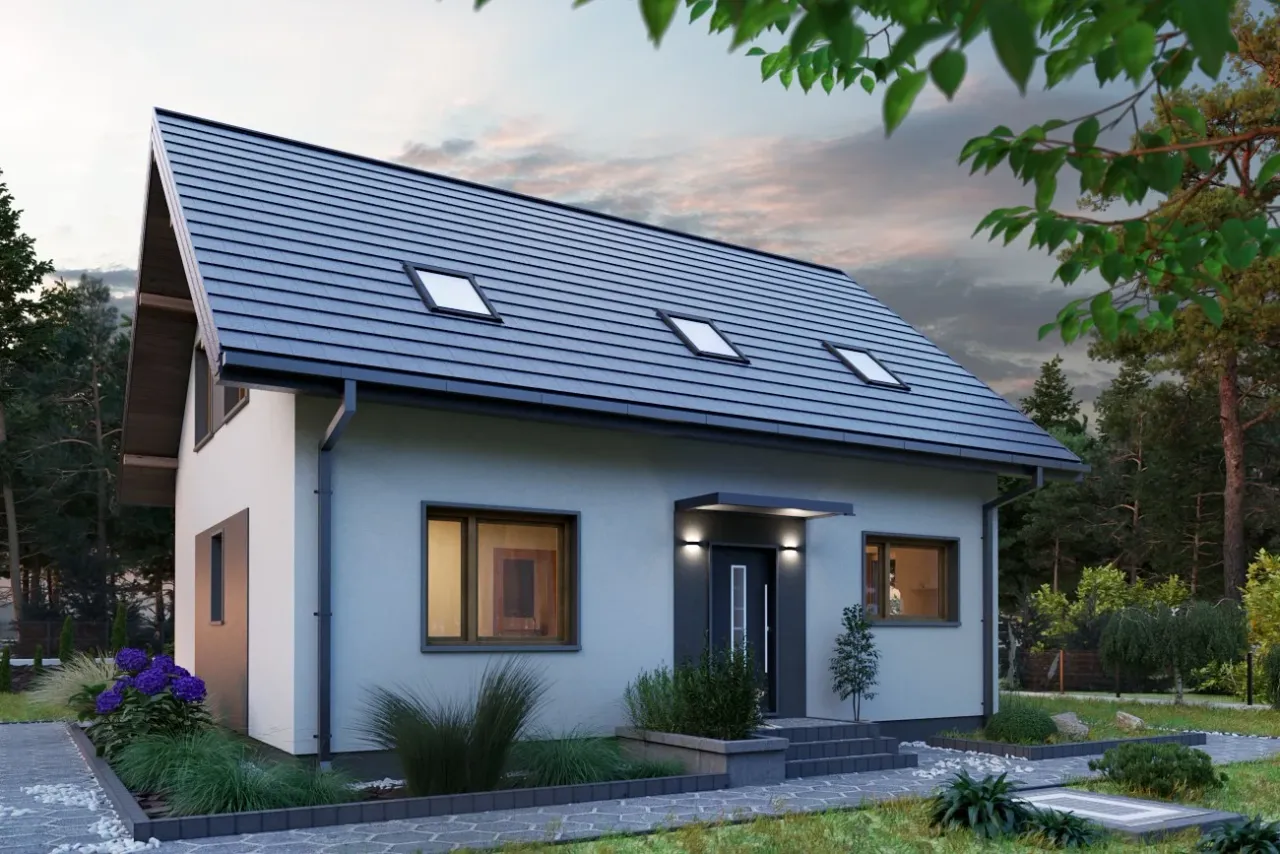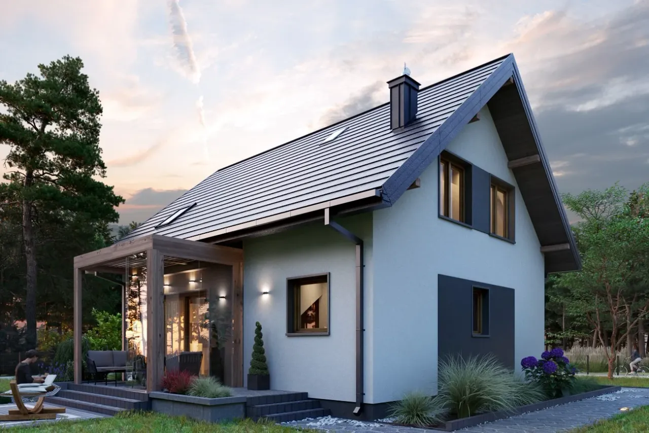 Projekt domu Malik Nano charakteryzuje się nowoczesnym stylem, który idealnie wpisuje się w aktualne trendy architektoniczne. Wyróżnia się funkcjonalnością przestrzeni, co jest niezwykle istotne dla rodzin poszukujących praktycznych rozwiązań. Zastosowanie dużych przeszkleń sprawia, że wnętrza są jasne i dobrze doświetlone, co pozytywnie wpływa na ogólny odbiór projektu. Projekt ten oferuje także estetyczne połączenie elewacji z naturalnymi materiałami, tworząc przyjemny wygląd zewnętrzny. zdecydowanie warto zwrócić uwagę na ten projekt przy wyborze domu dla rodziny, ponieważ łączy w sobie nowoczesność z przytulnością rodzinną.