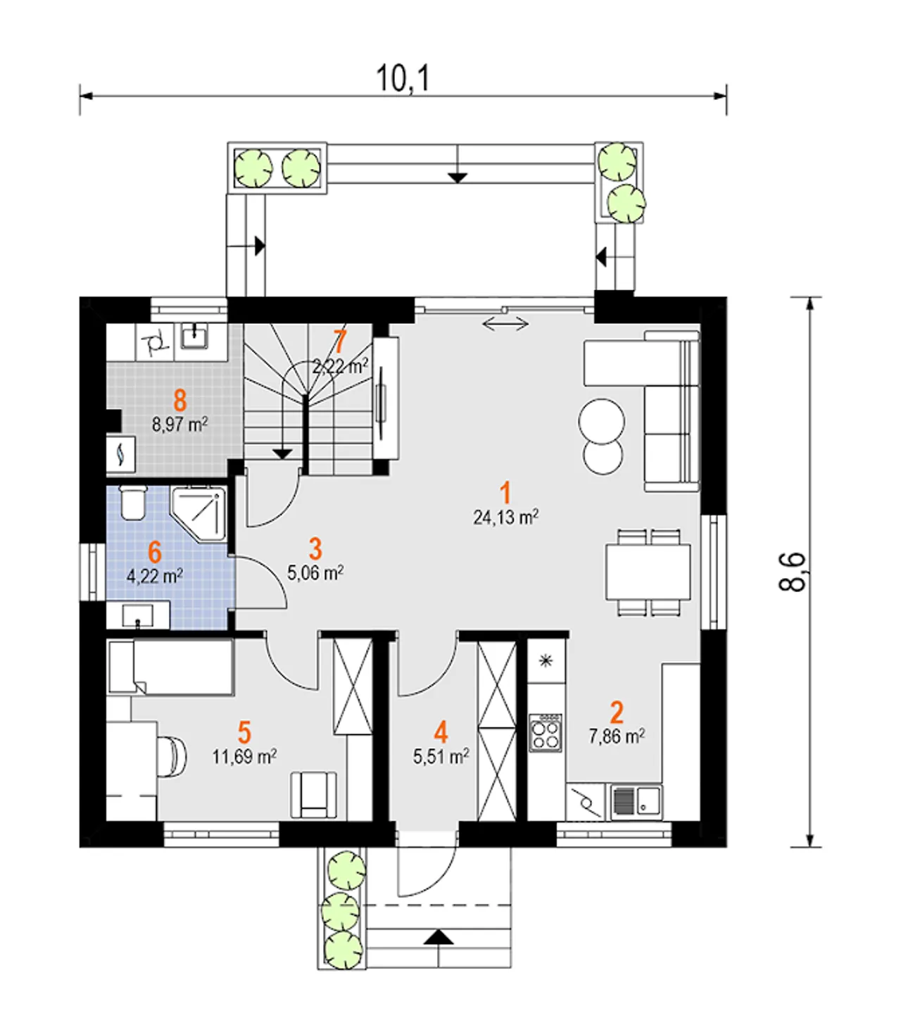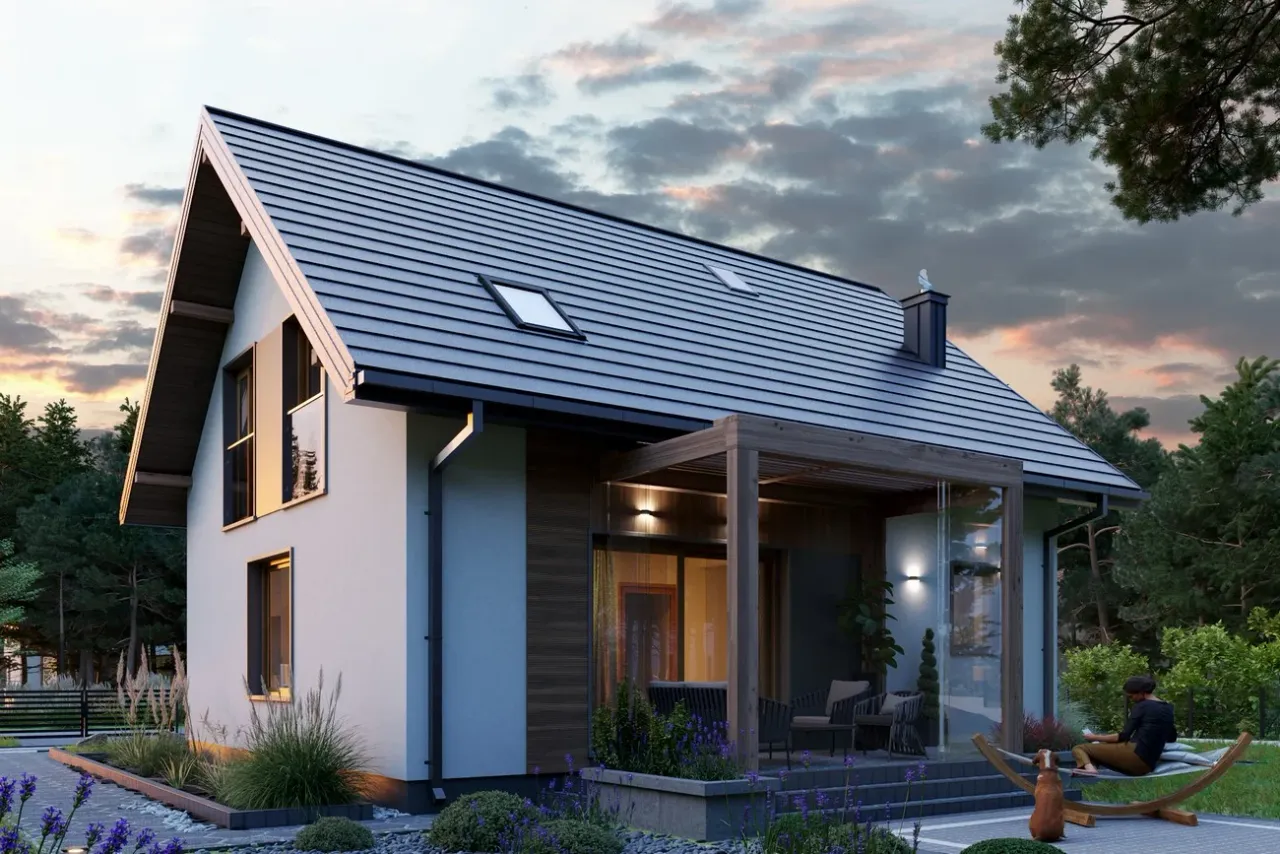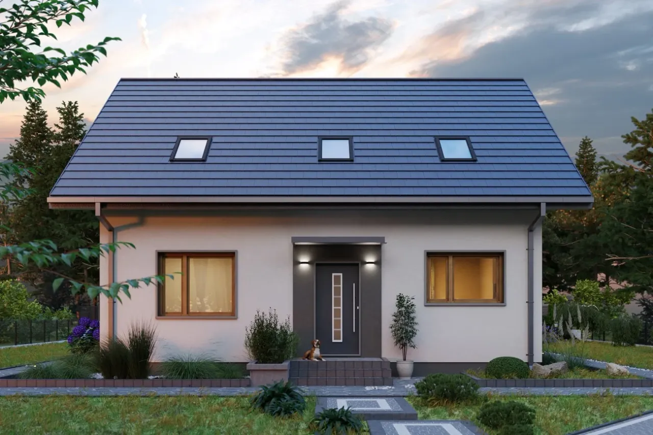 Projekt domu Malik Nano charakteryzuje się nowoczesnym stylem, który idealnie wpisuje się w aktualne trendy architektoniczne. Wyróżnia się funkcjonalnością przestrzeni, co jest niezwykle istotne dla rodzin poszukujących praktycznych rozwiązań. Zastosowanie dużych przeszkleń sprawia, że wnętrza są jasne i dobrze doświetlone, co pozytywnie wpływa na ogólny odbiór projektu. Projekt ten oferuje także estetyczne połączenie elewacji z naturalnymi materiałami, tworząc przyjemny wygląd zewnętrzny. zdecydowanie warto zwrócić uwagę na ten projekt przy wyborze domu dla rodziny, ponieważ łączy w sobie nowoczesność z przytulnością rodzinną.