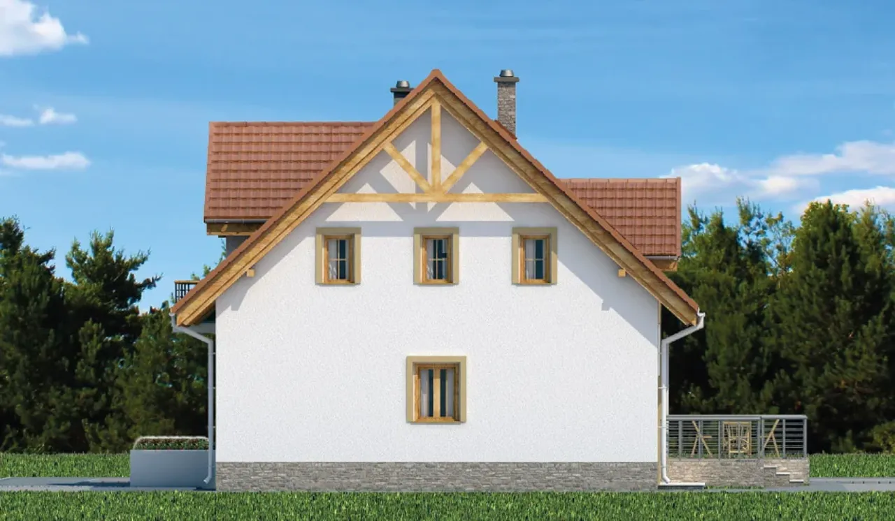 Kupując projekt w technologii murowanej powinieneś budować dom murowany. Zupełna zmiana technologii na szkieletową wymaga przeprojektowania całego budynku ( zmieniają się obciążenia, fundamenty, konstrukcja dachu). Wydamy zgodę na takie przeprojektowanie jednak wiążę się to z dużymi kosztami. Istnieją firmy wykonawcze, które podejmują się zmiany technologii budowy bezpłatnie przy skorzystaniu z ich usług wykonawczych. Zdarza się, że pracownia architektoniczna przygotowuje warianty konkretnego projektu przewidując także inne technologie. Prosimy o sprawdzenie czy istnieje poszukiwana wersja projektu, w zakładce - warianty projektu.