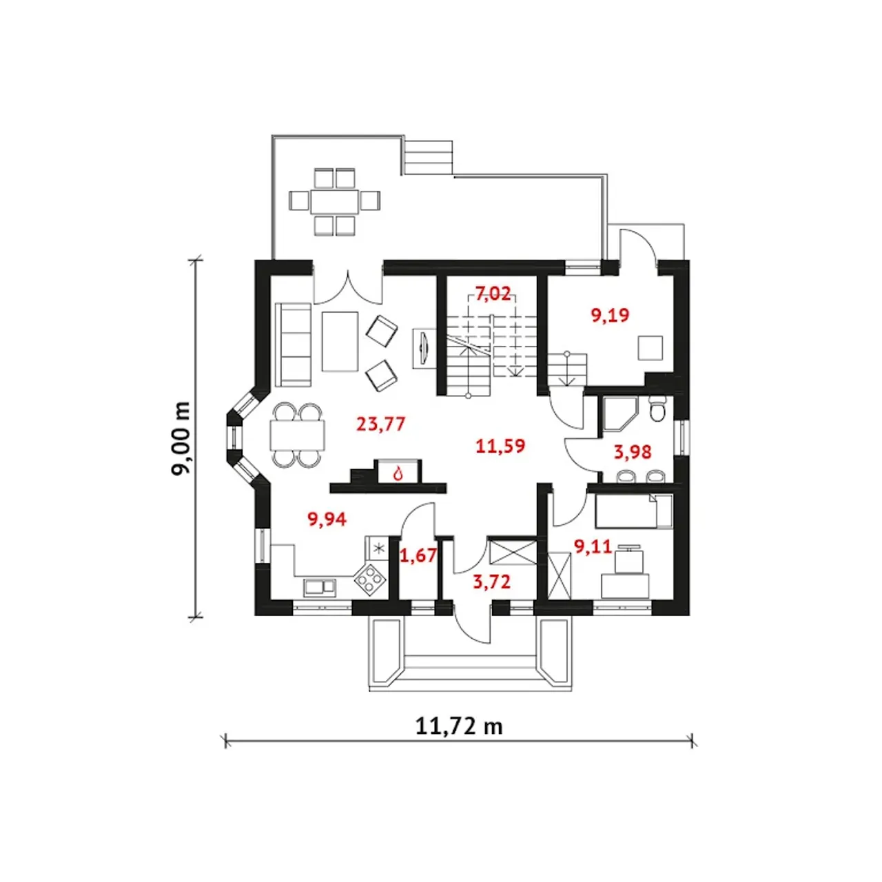 Szerokość budynku 11.72 m |