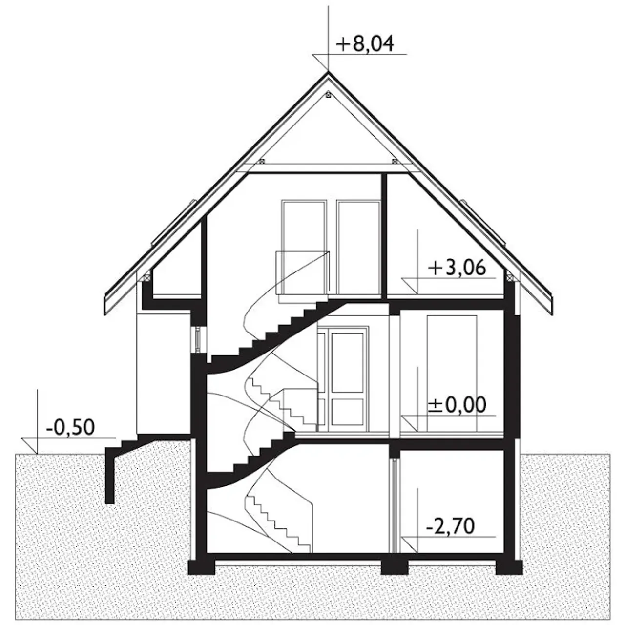 - przekroje - pokazują wszystkie elementy budynku po przecięciu go wzdłuż lub w poprzek od dachu do fundamentów tj. warstwy podłogi, stropów i dachu