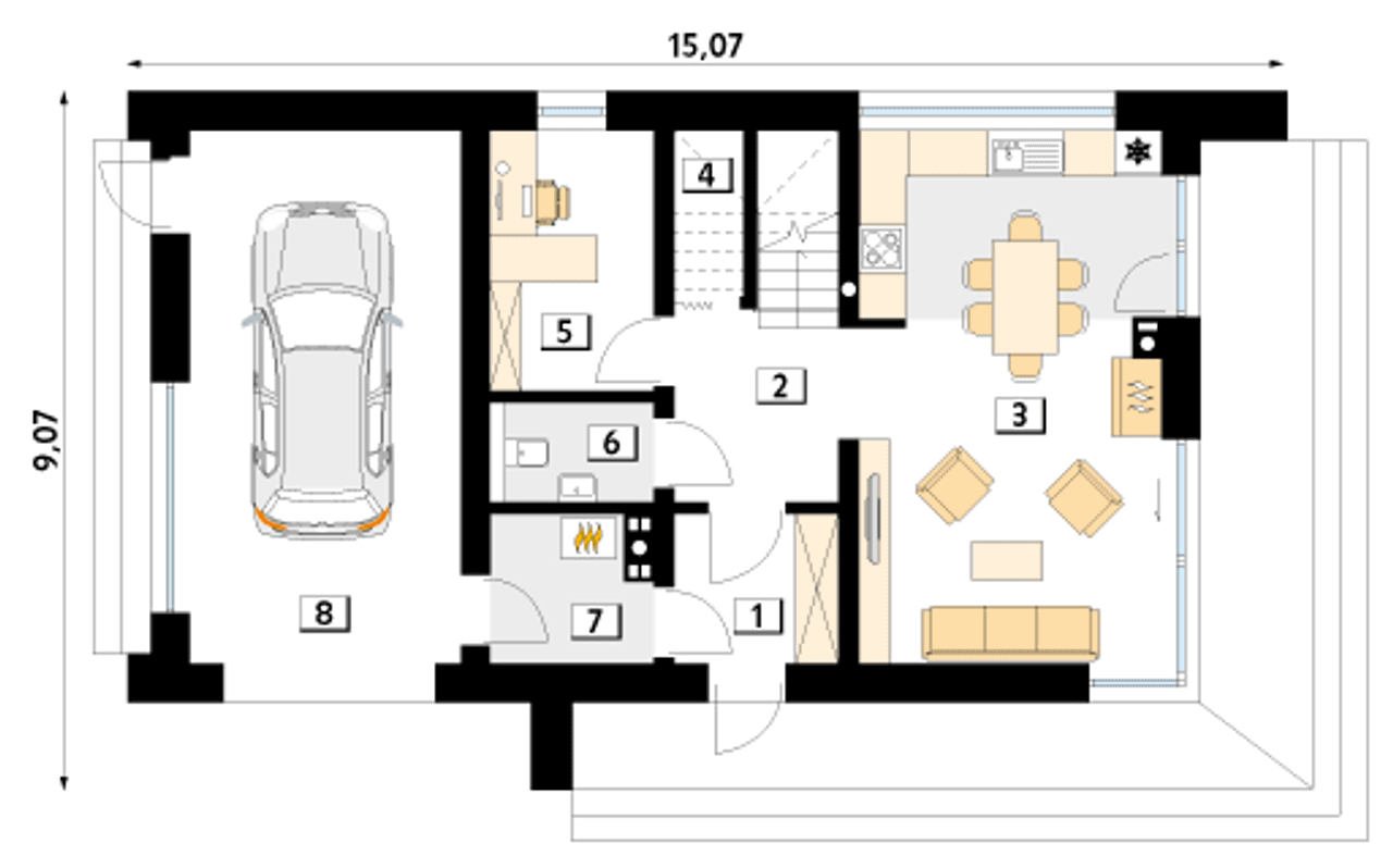 7. Kotłownia | 3,82 m² |