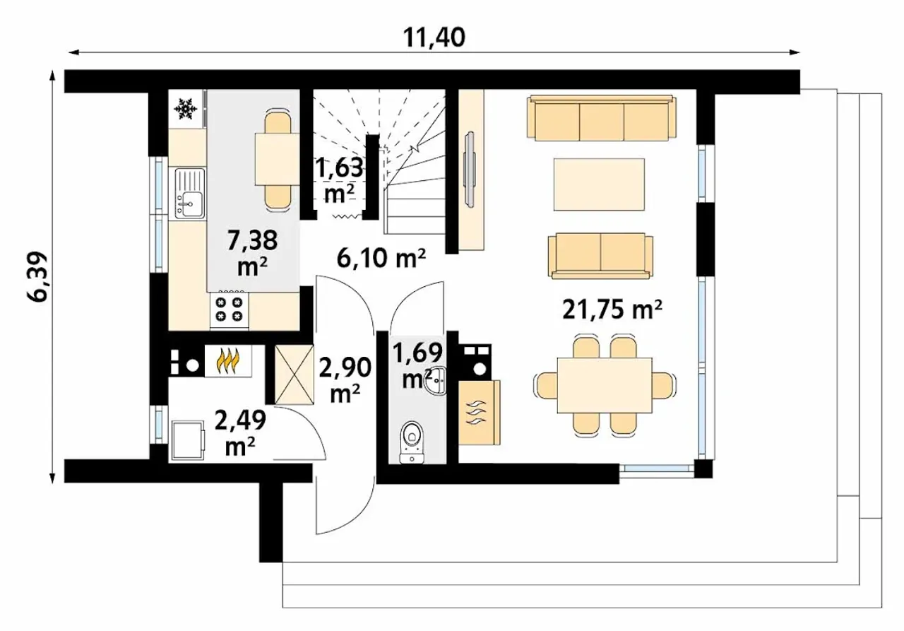 Długość budynku 6.39 m |