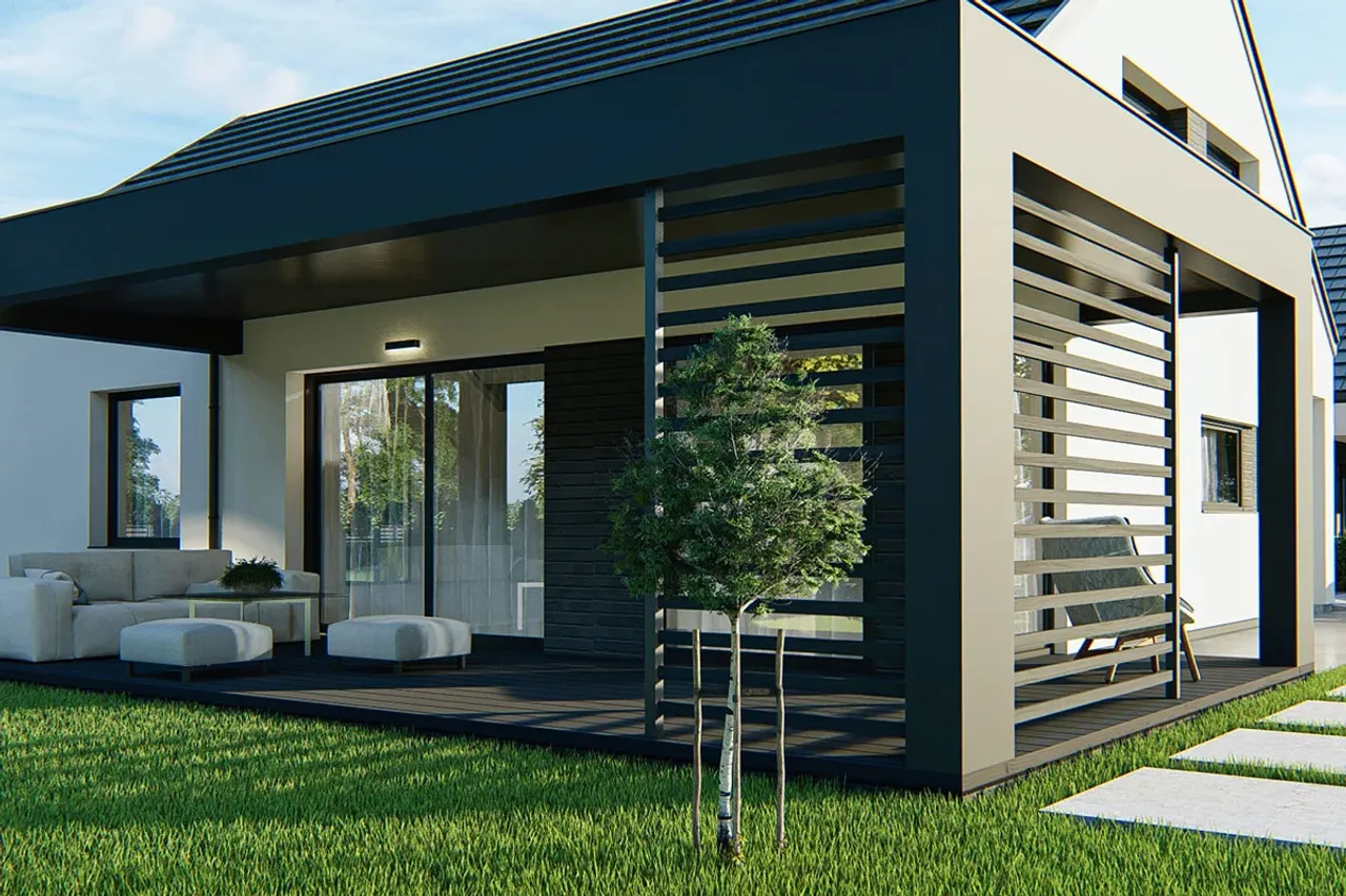 - Zmiany kształtu, wielkości, usytuowania elementów takich jak tarasy, wiaty, murki.