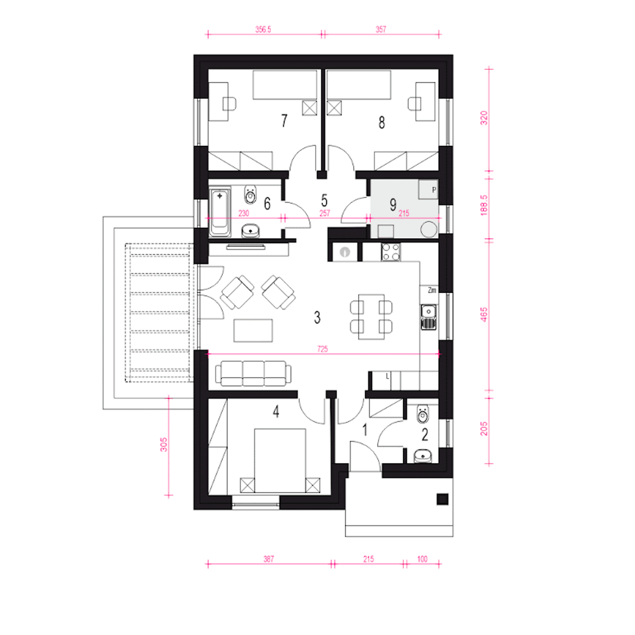 Wypełnij formularz i otrzymaj rysunki w pdf z dokładnymi wymiarami budynku i pomieszczeń (długość, szerokość, wysokość) dla projektu Mango bez garażu B