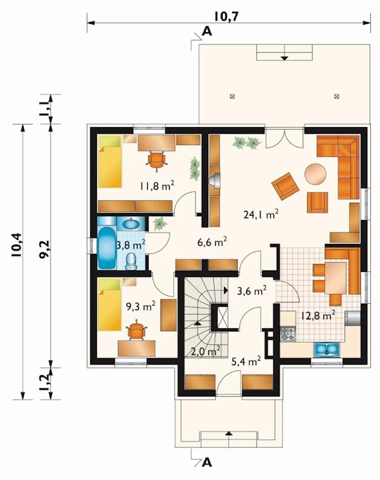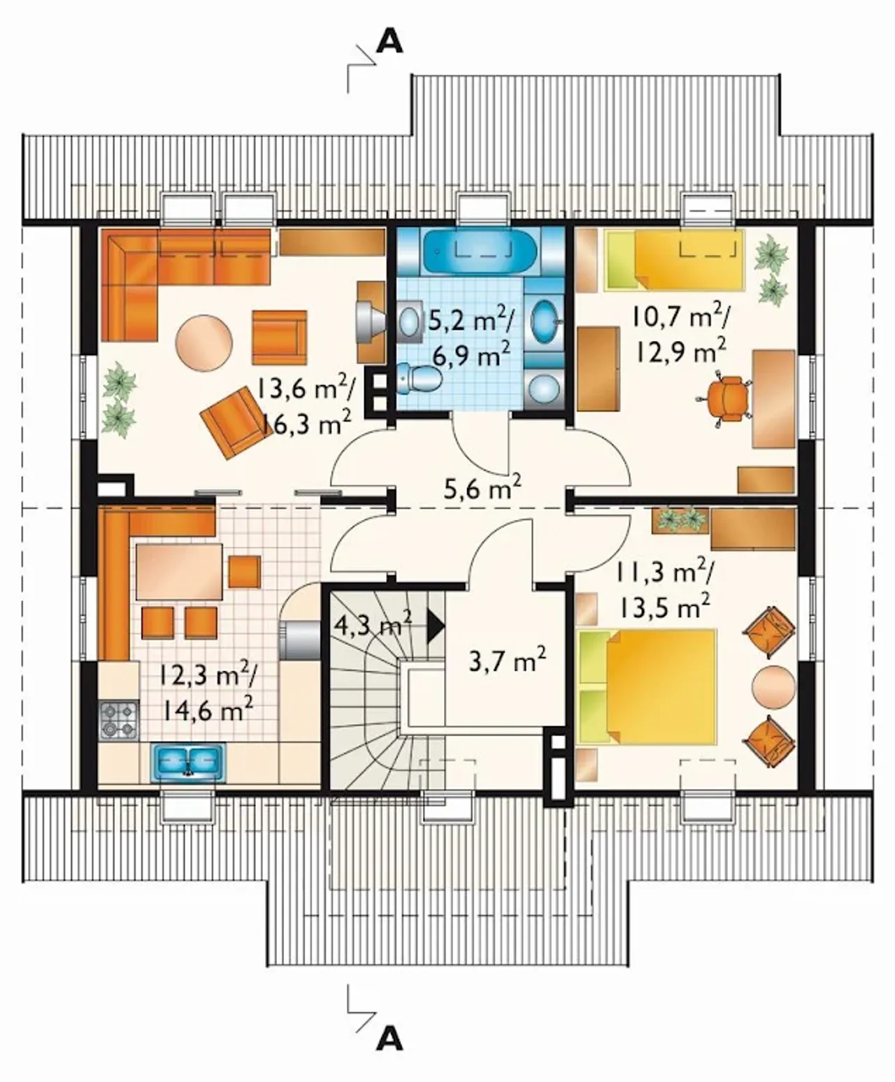 - elewacje - pokazują dokładny wygląd domu od frontu, z tyłu i z boków