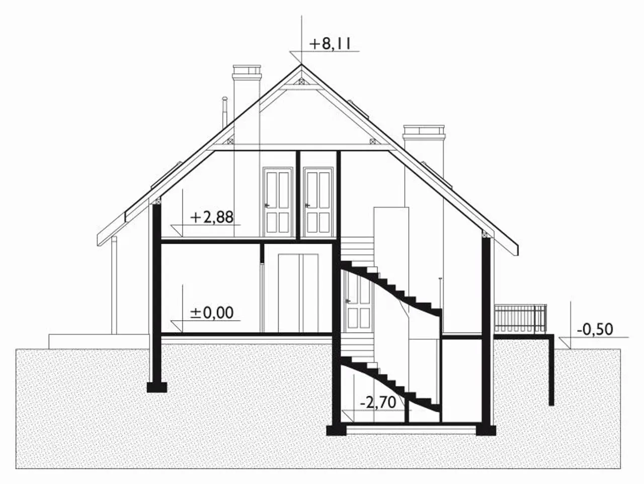 - przekroje - pokazują wszystkie elementy budynku po przecięciu go wzdłuż lub w poprzek od dachu do fundamentów tj. warstwy podłogi, stropów i dachu