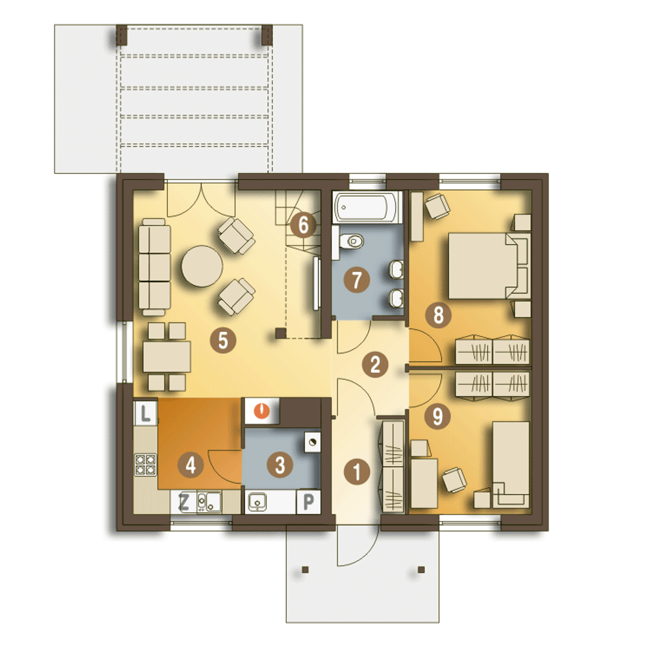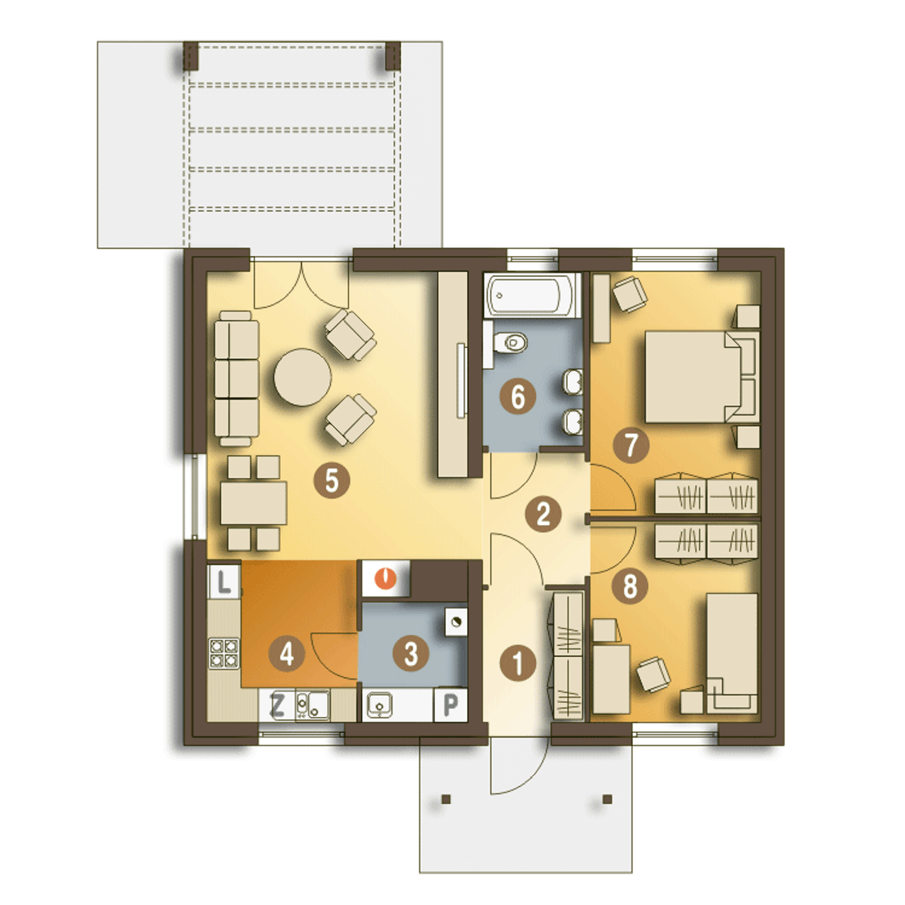 Wypełnij formularz i otrzymaj rysunki w pdf z dokładnymi wymiarami budynku i pomieszczeń (długość, szerokość, wysokość) dla projektu Marcin bez garażu B1