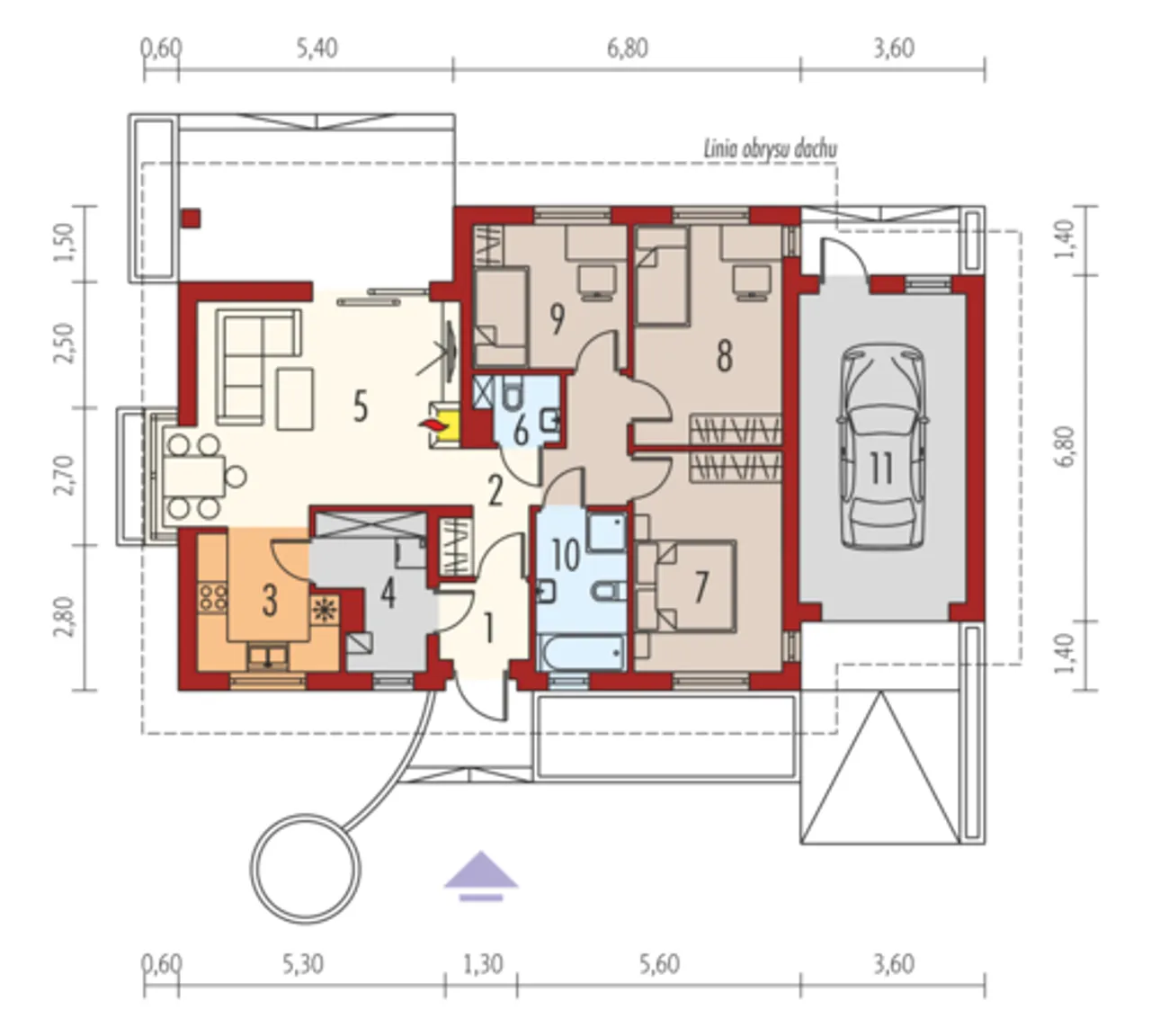 Wypełnij formularz i otrzymaj rysunki w pdf z dokładnymi wymiarami budynku i pomieszczeń (długość, szerokość, wysokość) dla projektu Margo G1 30 stopni