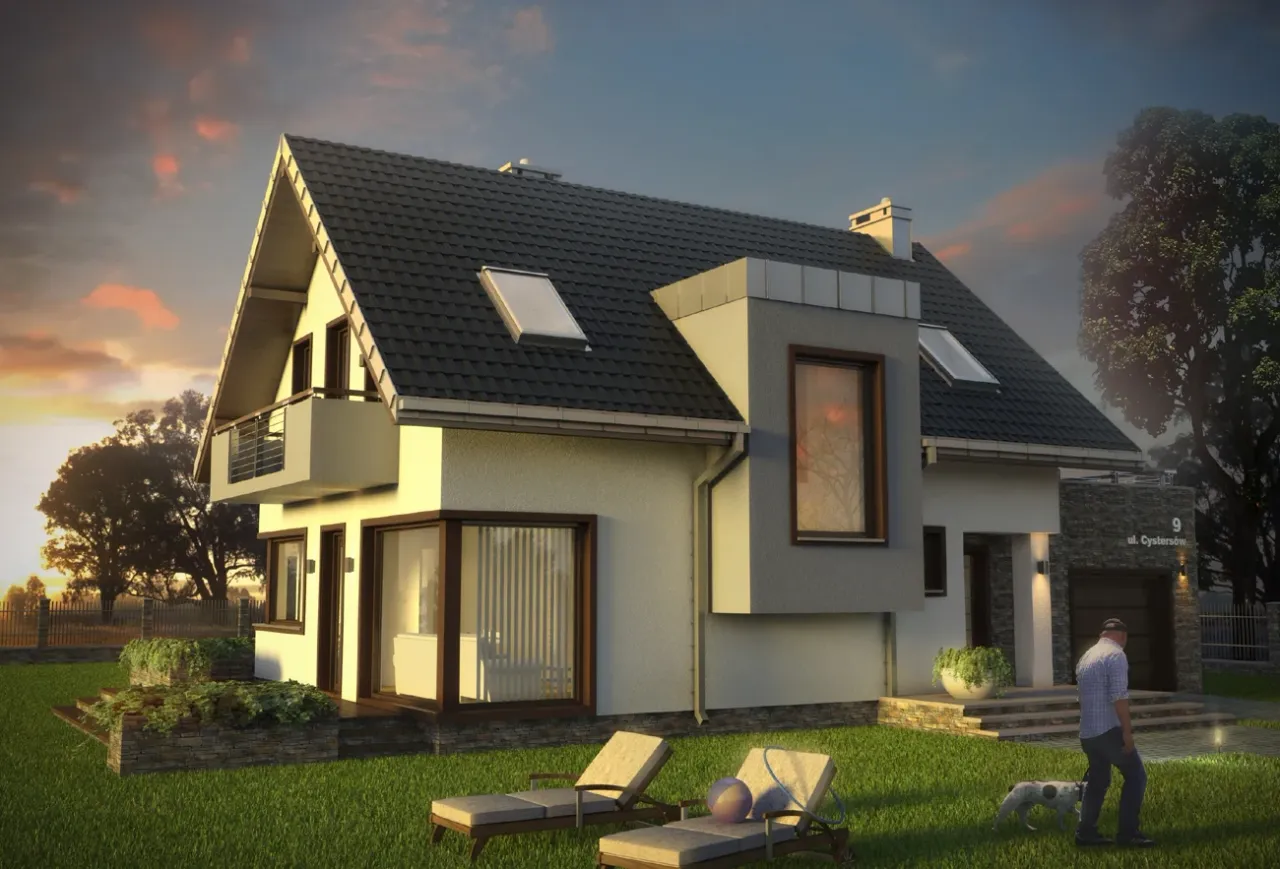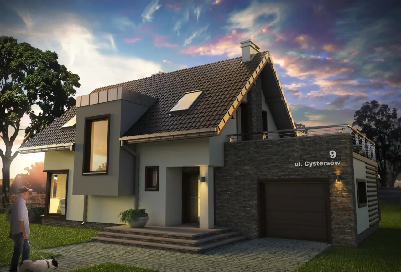 - elewacje - pokazują dokładny wygląd domu od frontu, z tyłu i z boków