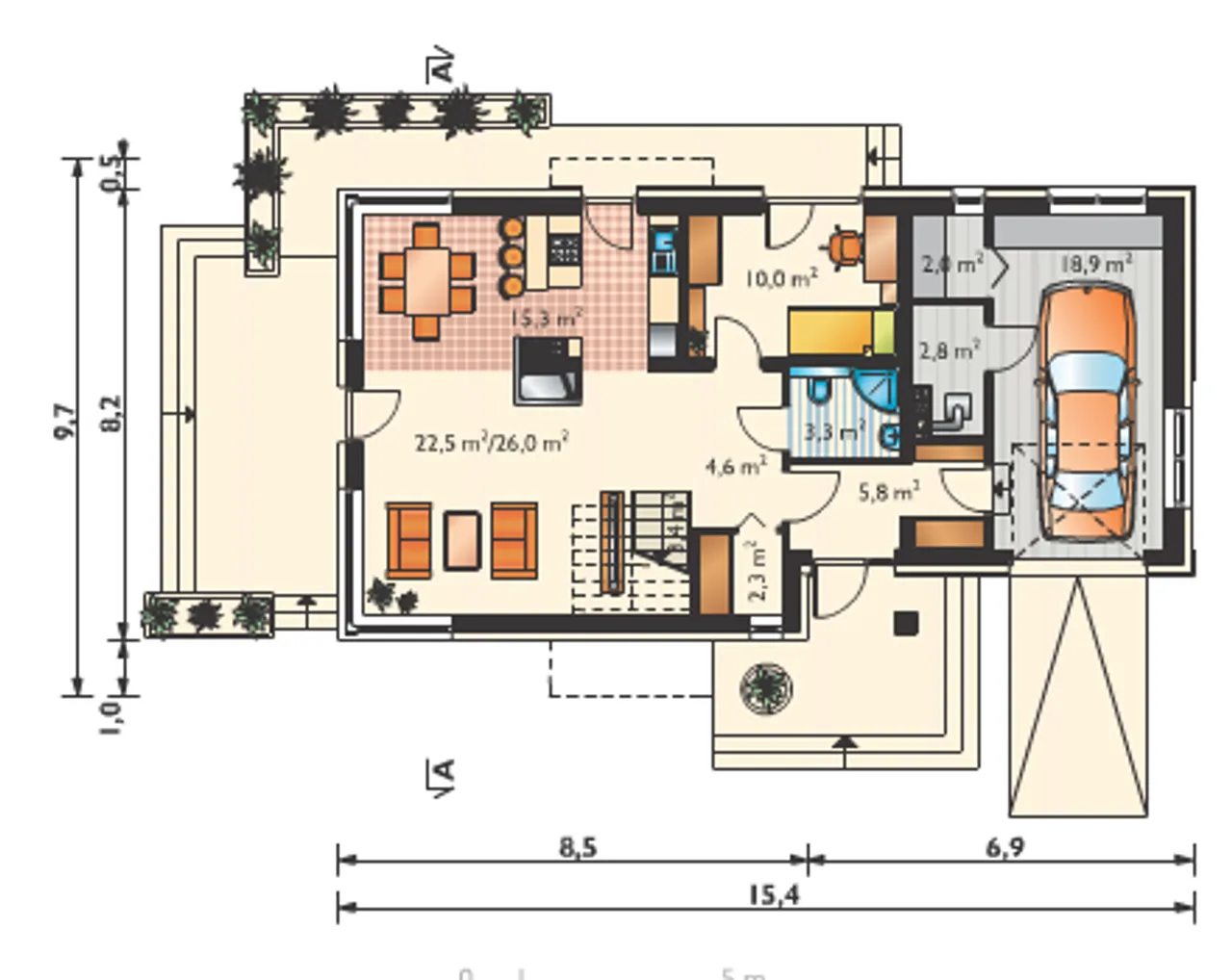 Długość budynku 15.4 m |