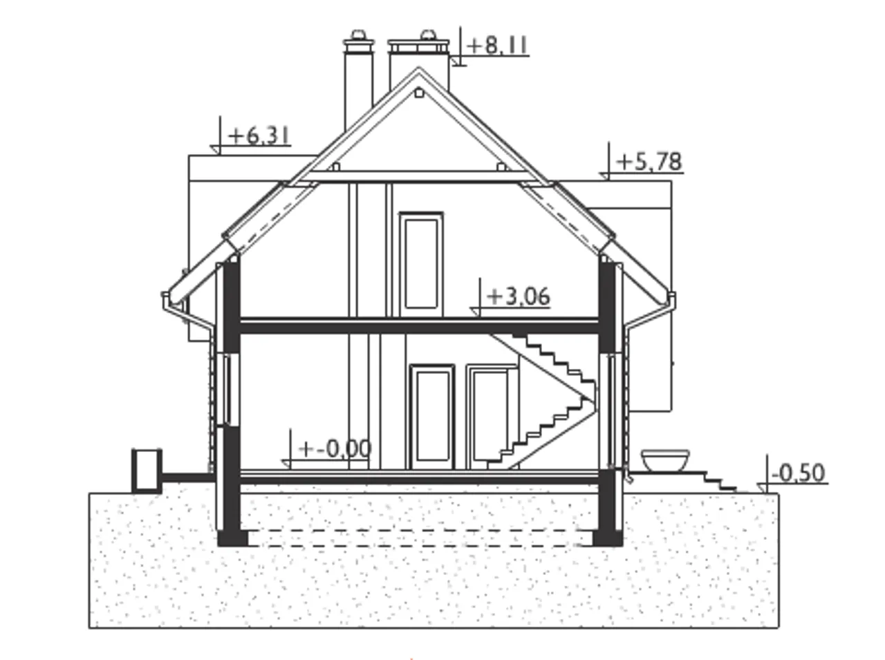 - przekroje - pokazują wszystkie elementy budynku po przecięciu go wzdłuż lub w poprzek od dachu do fundamentów tj. warstwy podłogi, stropów i dachu