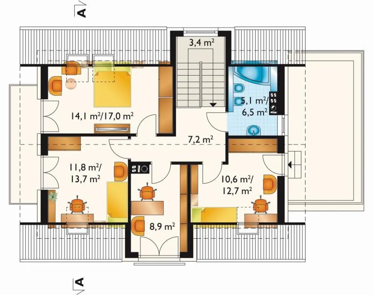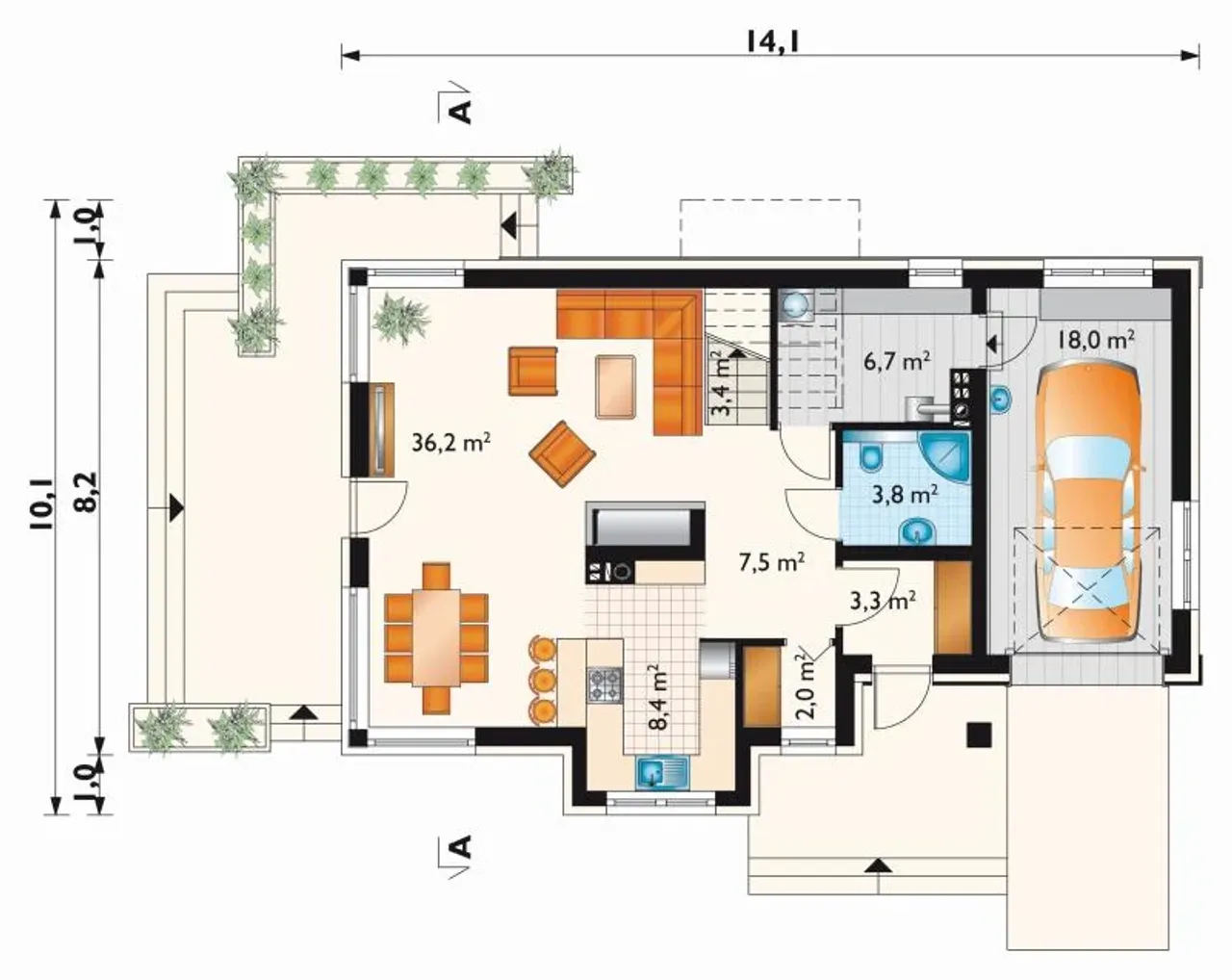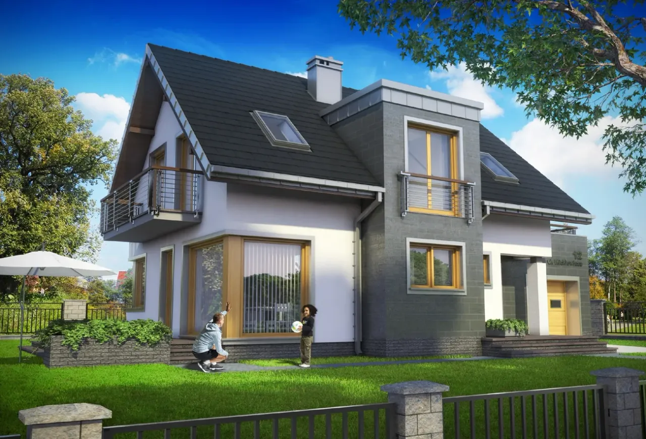 - elewacje - pokazują dokładny wygląd domu od frontu, z tyłu i z boków