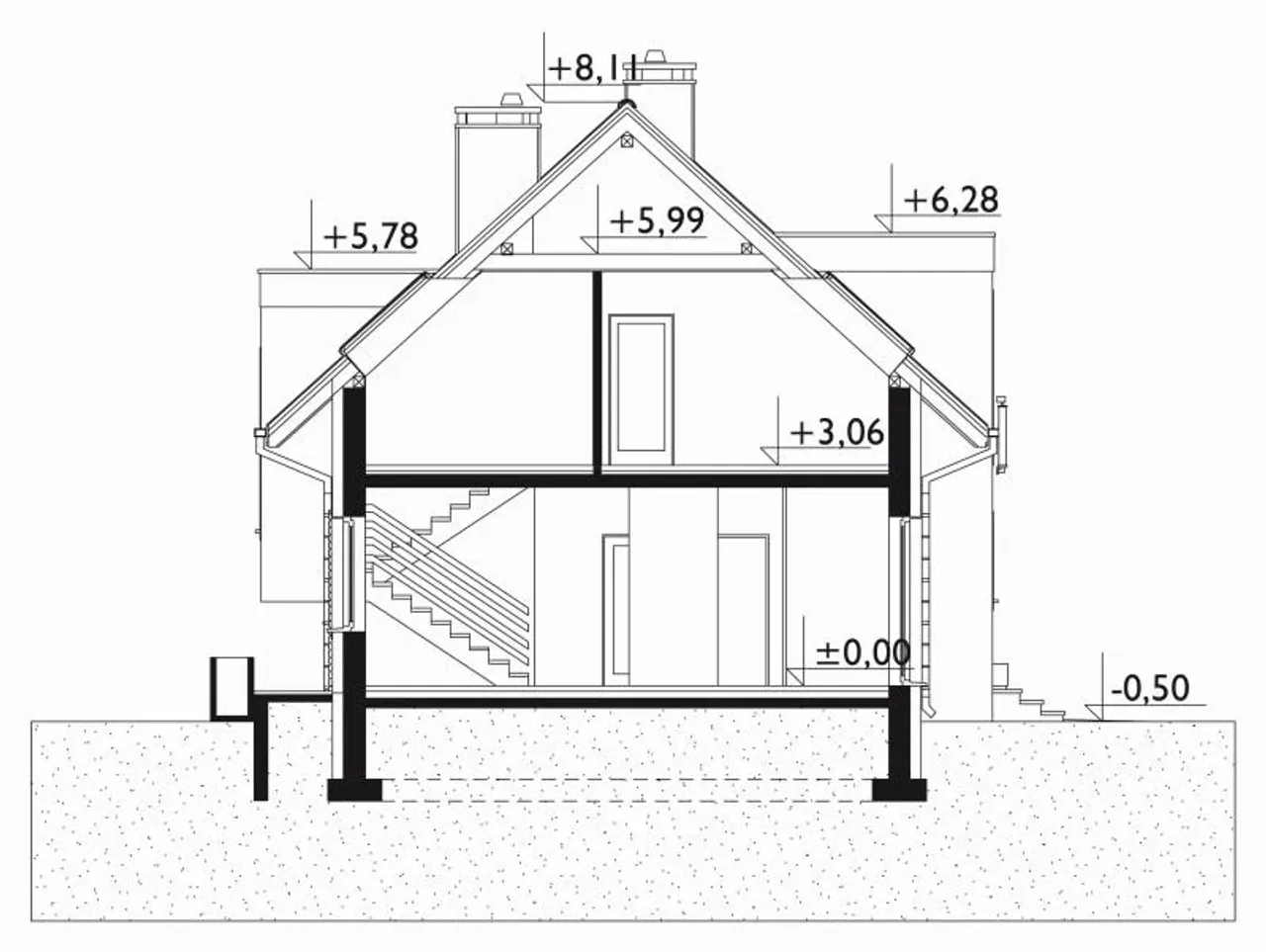 - przekroje - pokazują wszystkie elementy budynku po przecięciu go wzdłuż lub w poprzek od dachu do fundamentów tj. warstwy podłogi, stropów i dachu