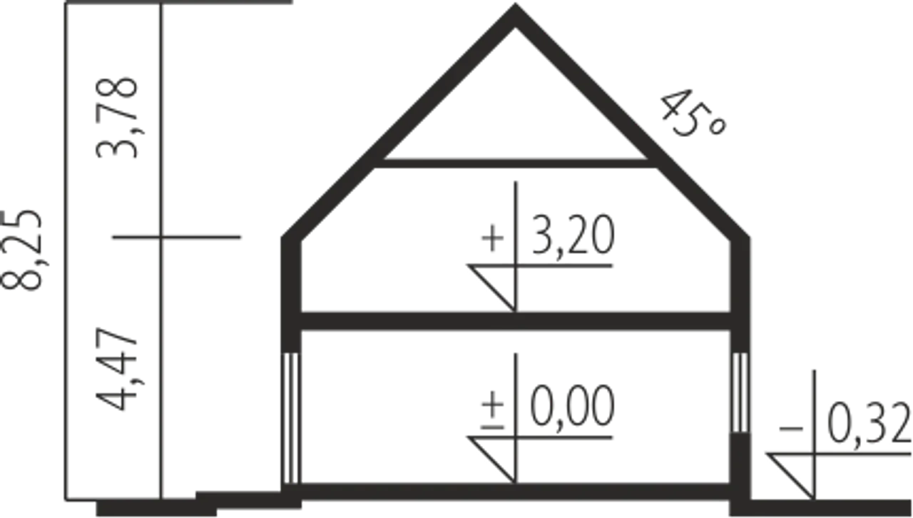 Kąt nachylenia dachu 45 ° |