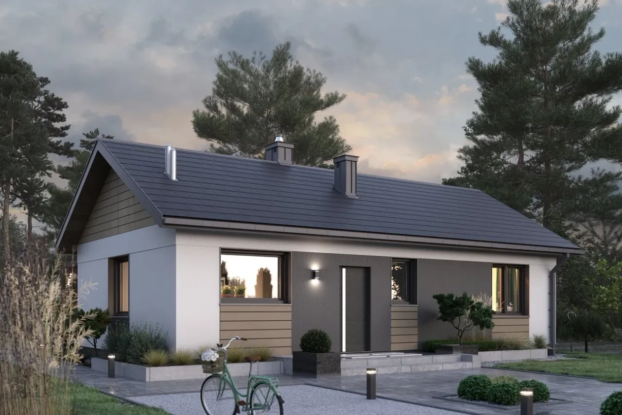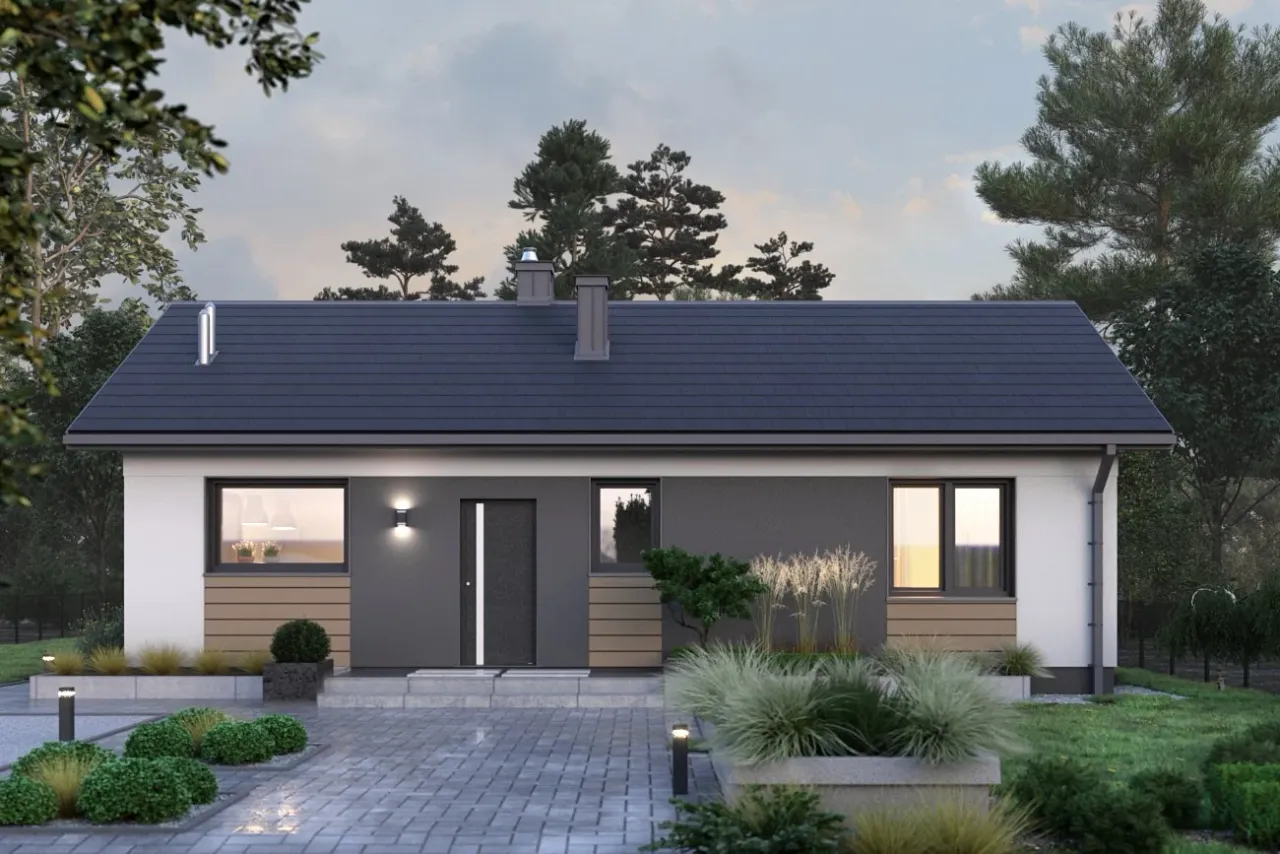 - elewacje - pokazują dokładny wygląd domu od frontu, z tyłu i z boków