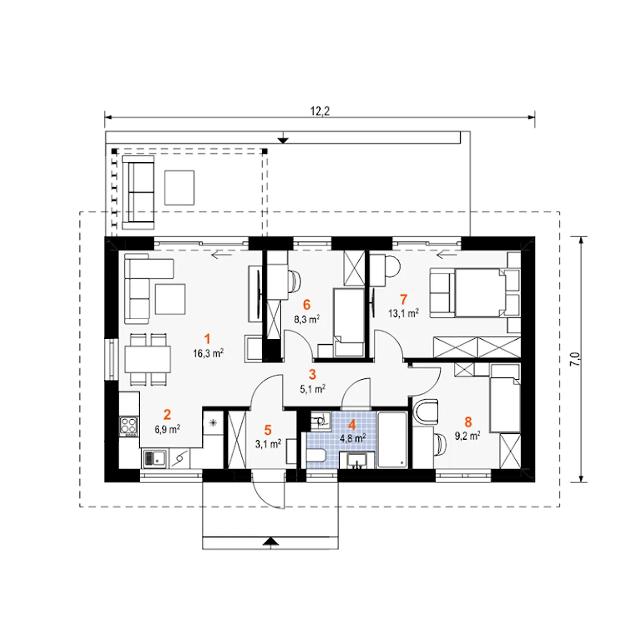 Wypełnij formularz i otrzymaj rysunki w pdf z dokładnymi wymiarami budynku i pomieszczeń (długość, szerokość, wysokość) dla projektu Martin Beta Max
