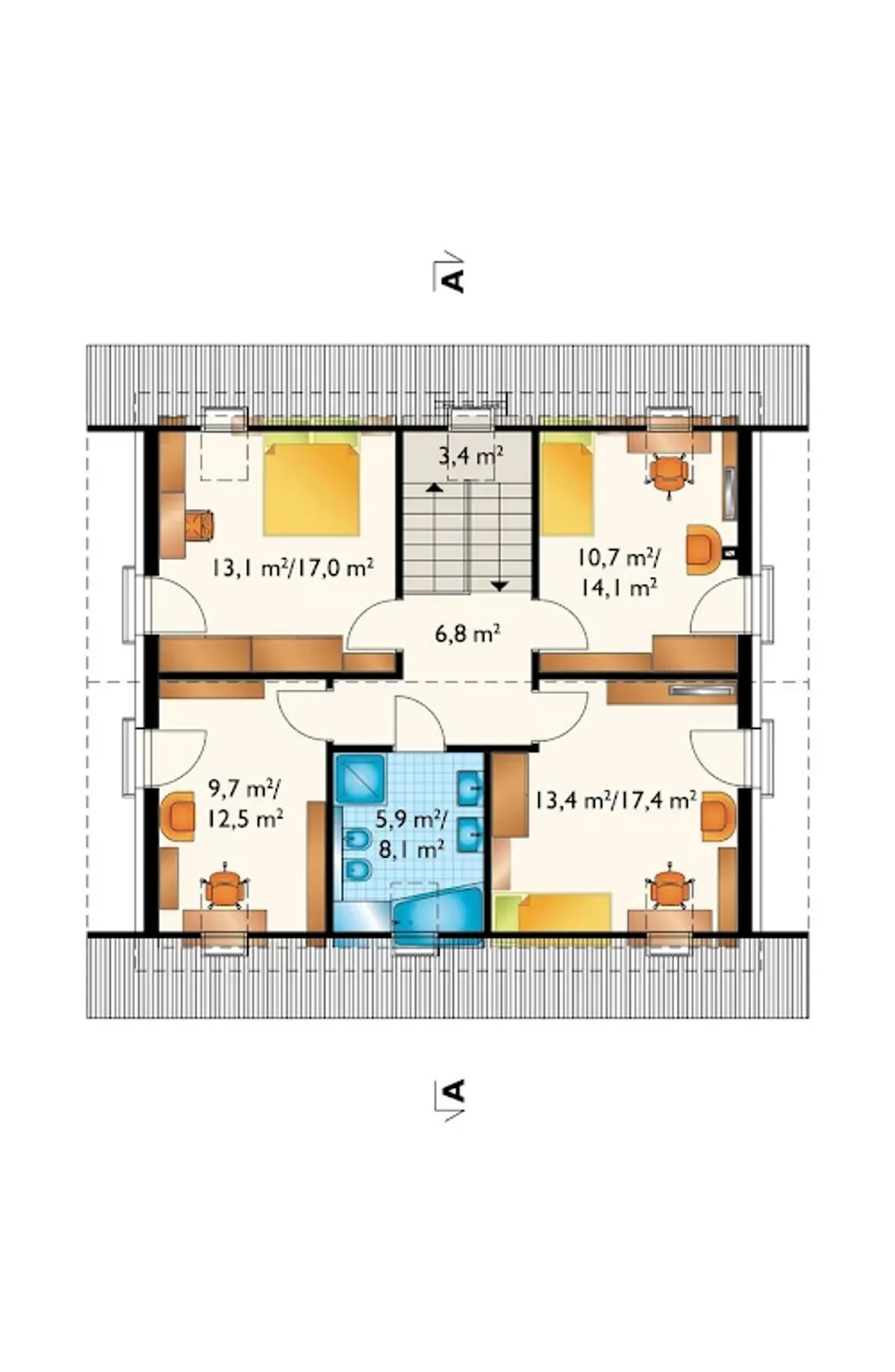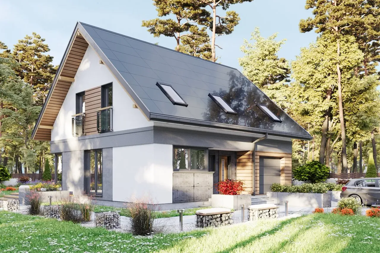 - elewacje - pokazują dokładny wygląd domu od frontu, z tyłu i z boków