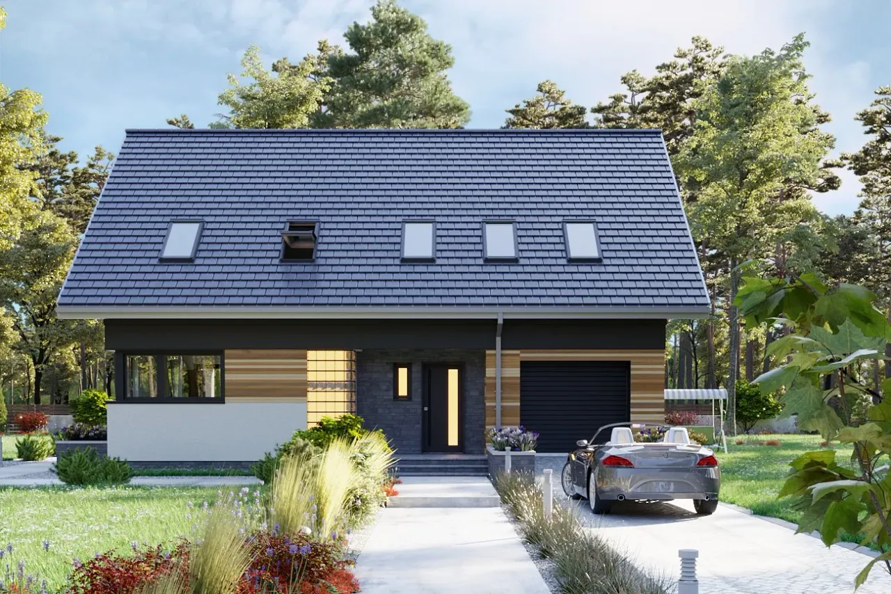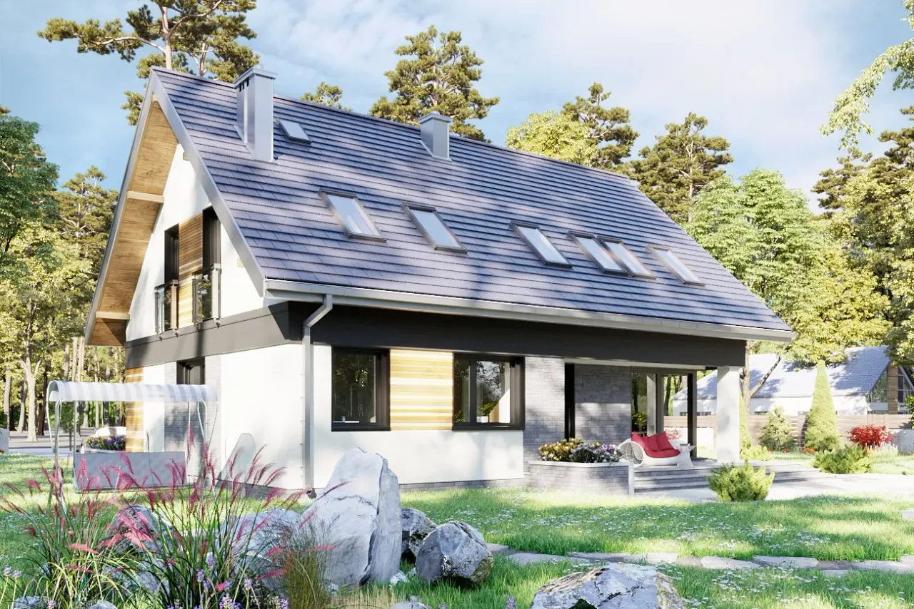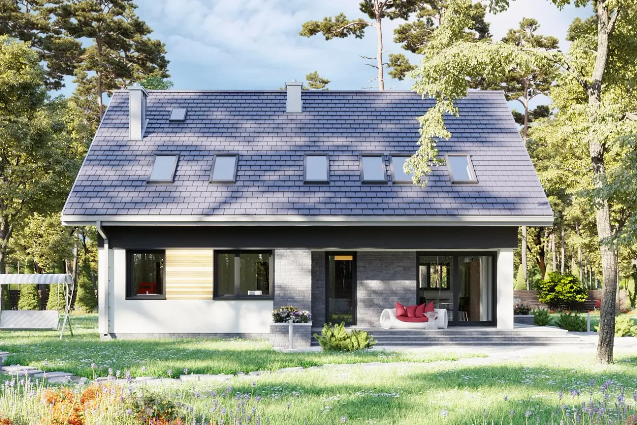 - elewacje - pokazują dokładny wygląd domu od frontu, z tyłu i z boków