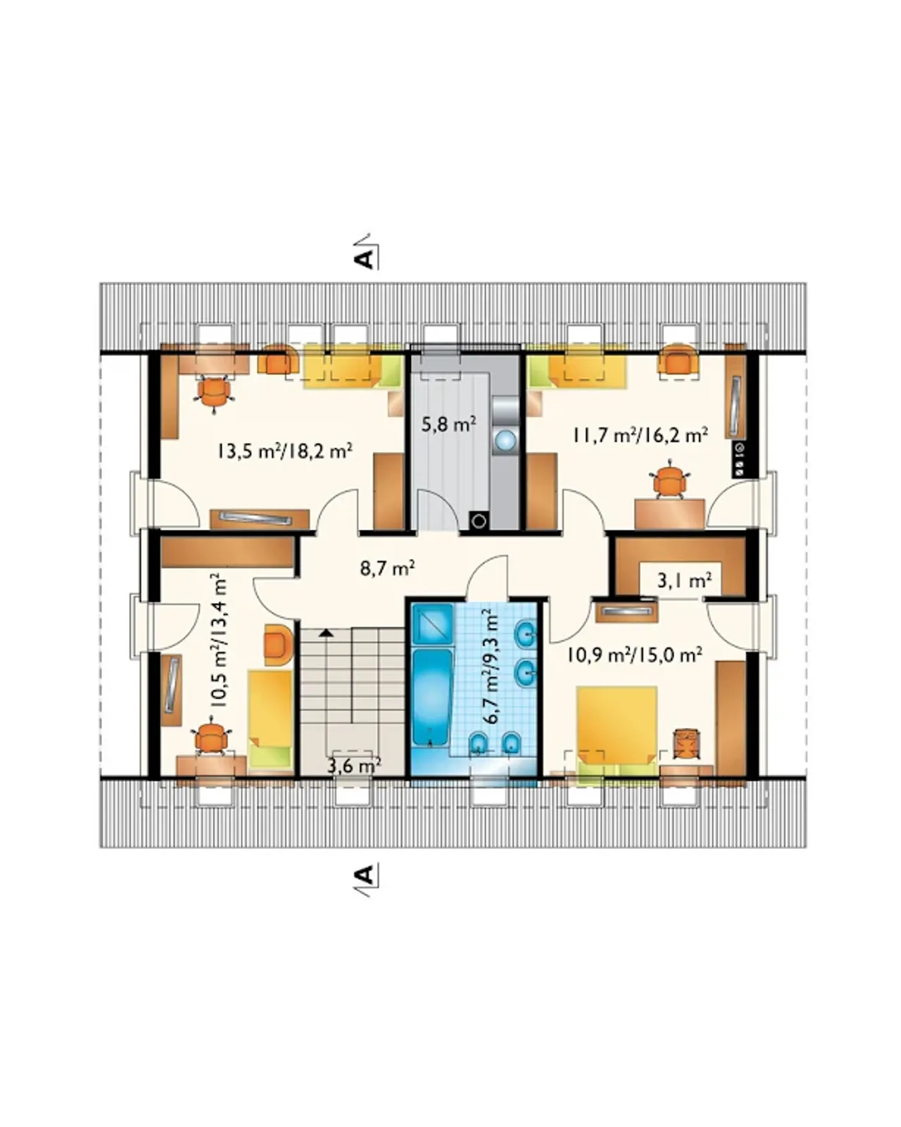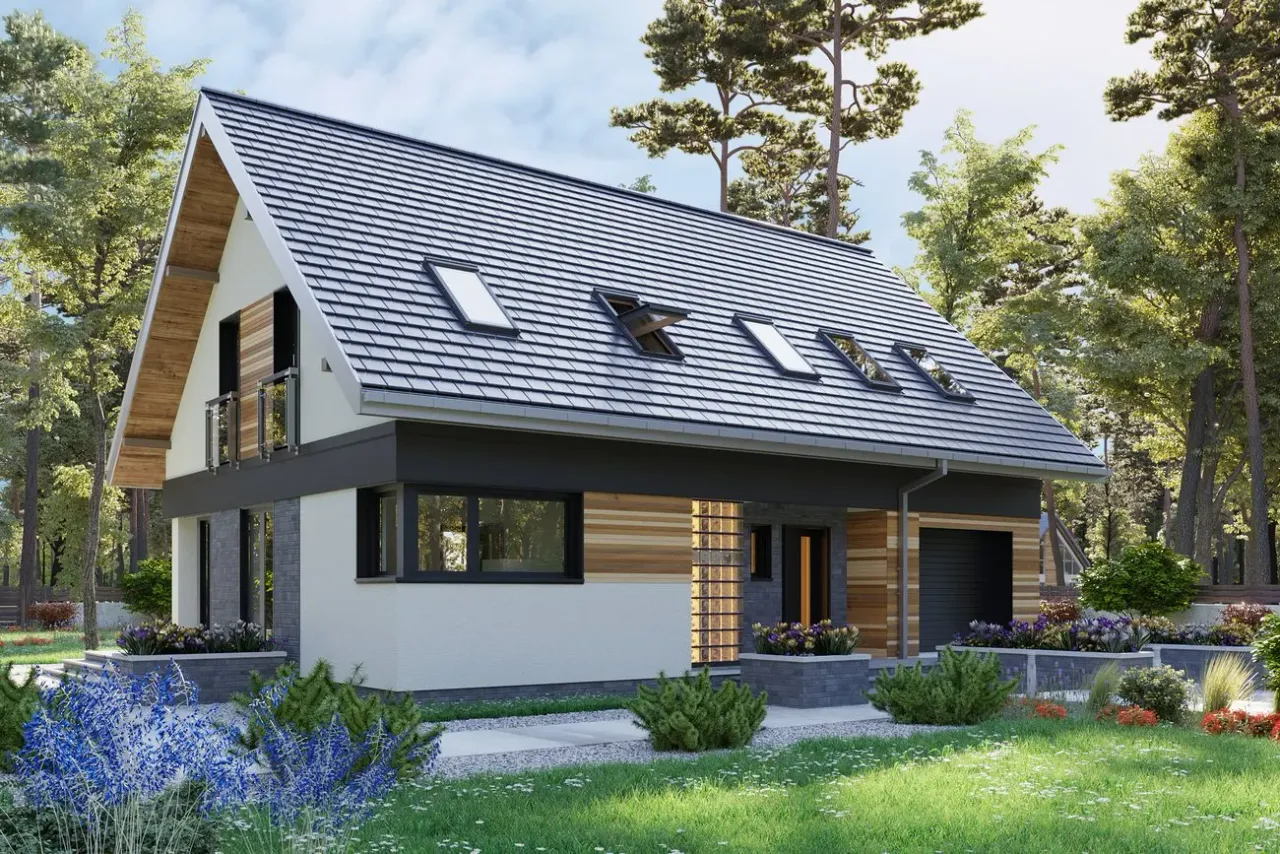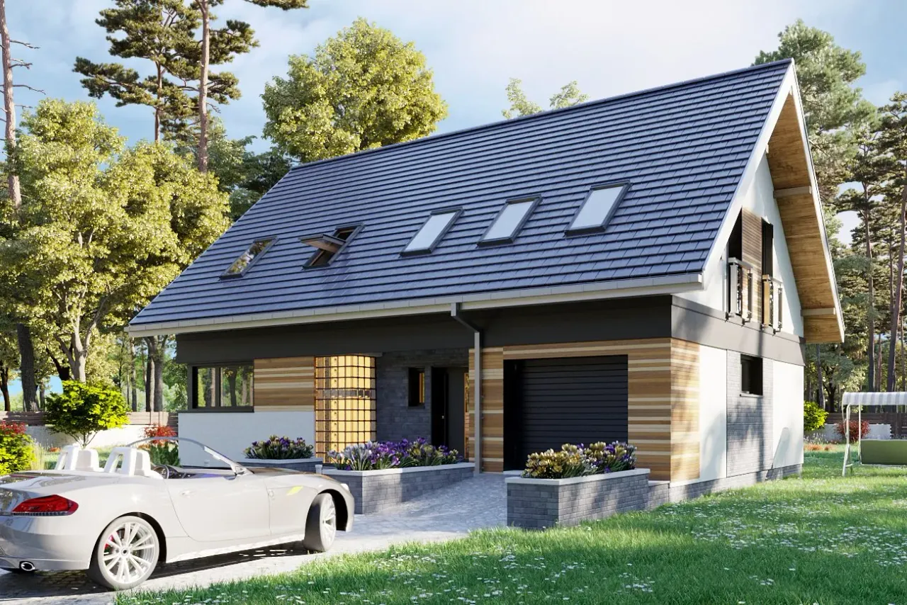 - elewacje - pokazują dokładny wygląd domu od frontu, z tyłu i z boków