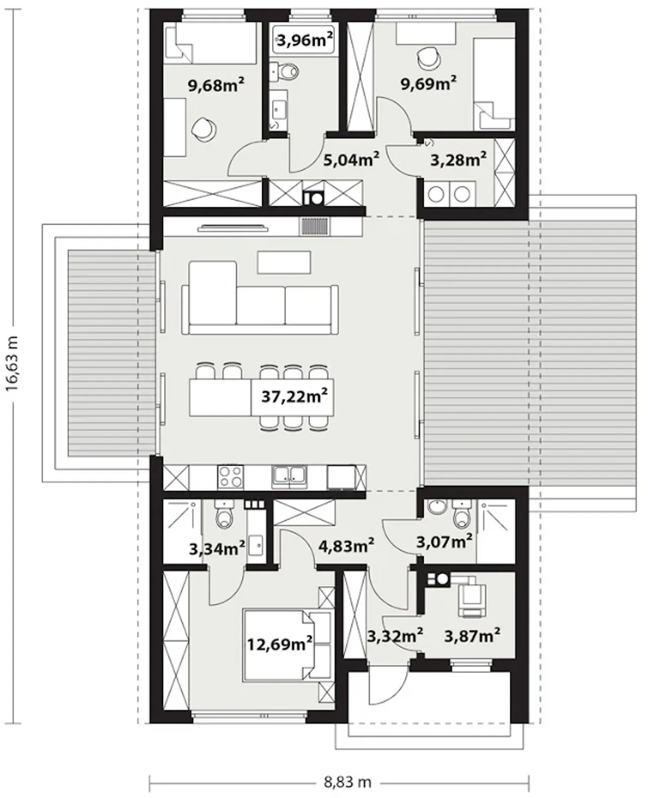 | Szerokość budynku 8.83 m |