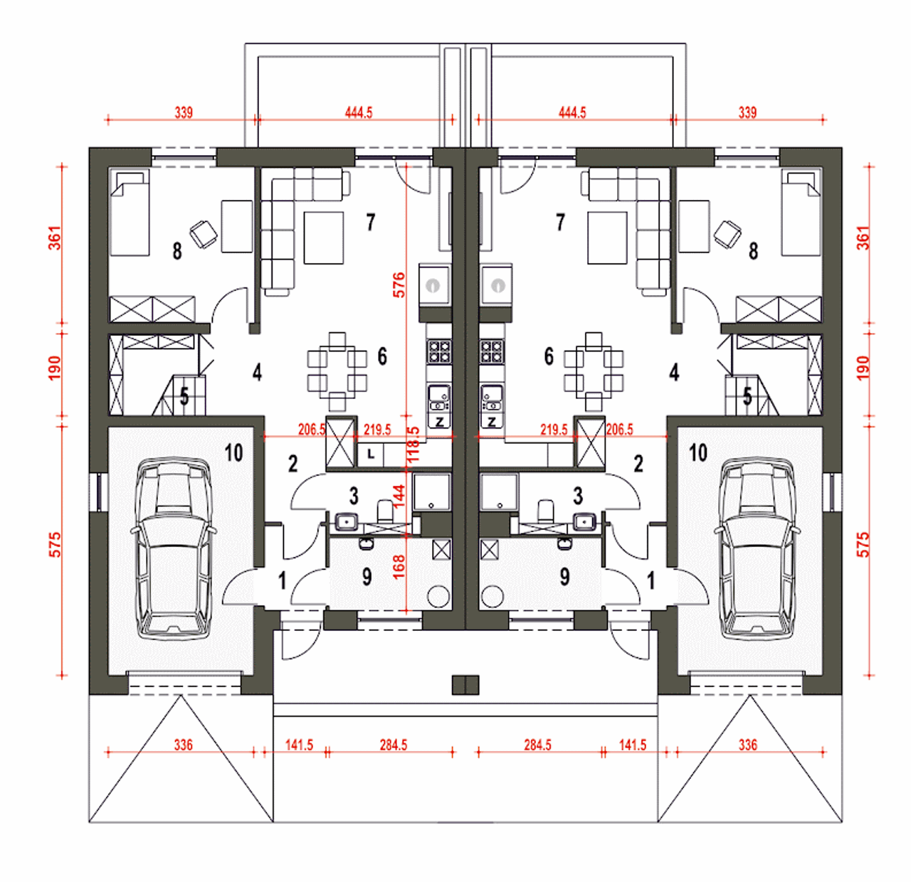 Wypełnij formularz i otrzymaj rysunki w pdf z dokładnymi wymiarami budynku i pomieszczeń (długość, szerokość, wysokość) dla projektu Mazurek III z garażem 1-st. bliźniak A-BL2