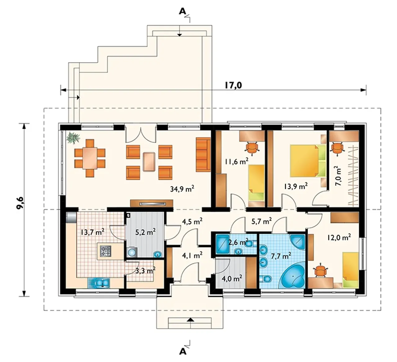 9. Pokój dzienny z jadalnią | 34,91 m² |