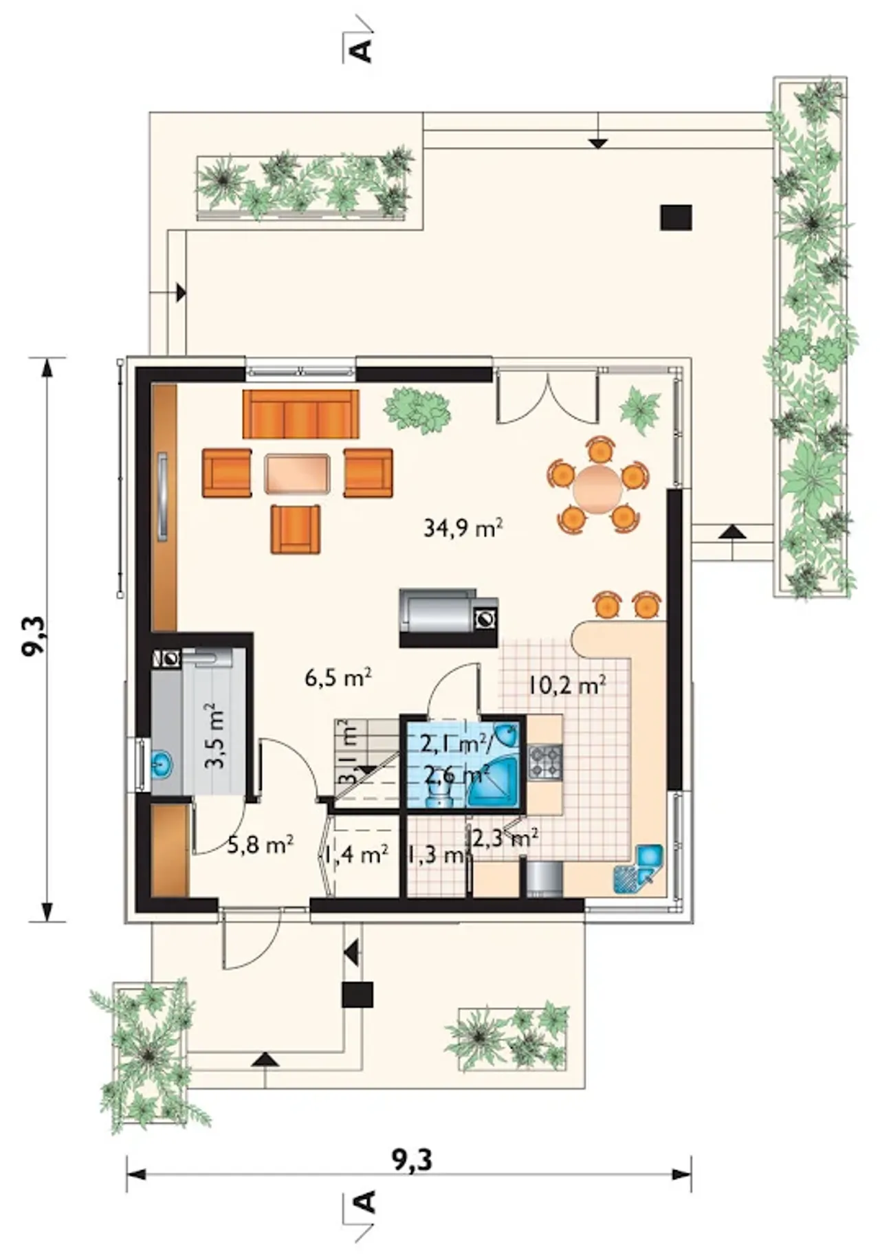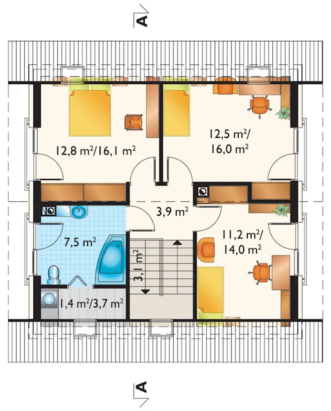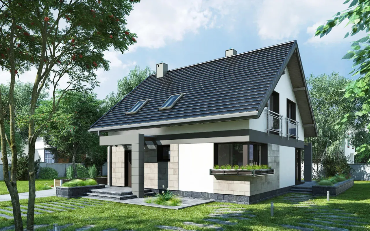- elewacje - pokazują dokładny wygląd domu od frontu, z tyłu i z boków