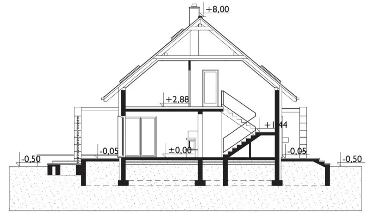 - przekroje - pokazują wszystkie elementy budynku po przecięciu go wzdłuż lub w poprzek od dachu do fundamentów tj. warstwy podłogi, stropów i dachu