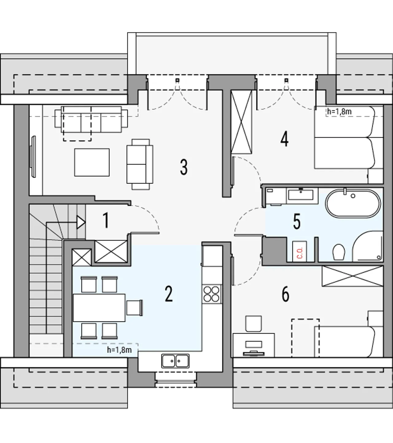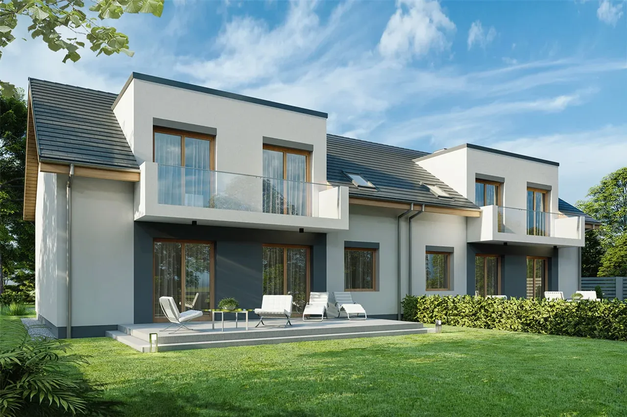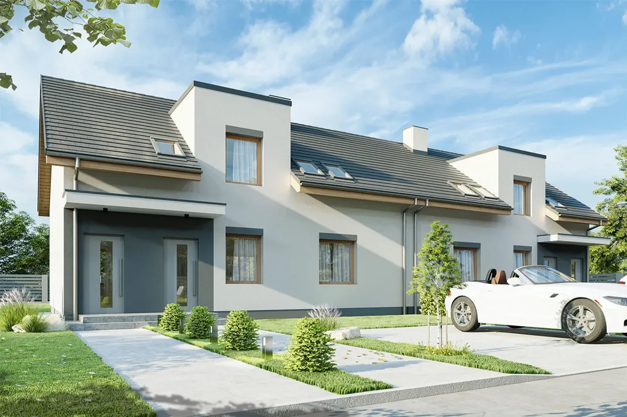 Projekt domu Melisa 1 - segment lewy to prawdziwa perła wśród domów szeregowych. Jego nowoczesna i elegancka architektura sprawia, że wyróżnia się na tle innych. Idealny dla rodziny ceniącej sobie komfort i funkcjonalność, a zarazem poszukującej domu z charakterem. Kamienna elewacja w połączeniu z drewnianymi elementami tworzy ciepły, domowy klimat, a duża przestrzeń przeszklona doświetla wnętrze, dając poczucie otwartości i bliskości z naturą. Każdy, kto marzy o stylowym, a zarazem praktycznym miejscu dla swojej rodziny, będzie zachwycony tym projektem.