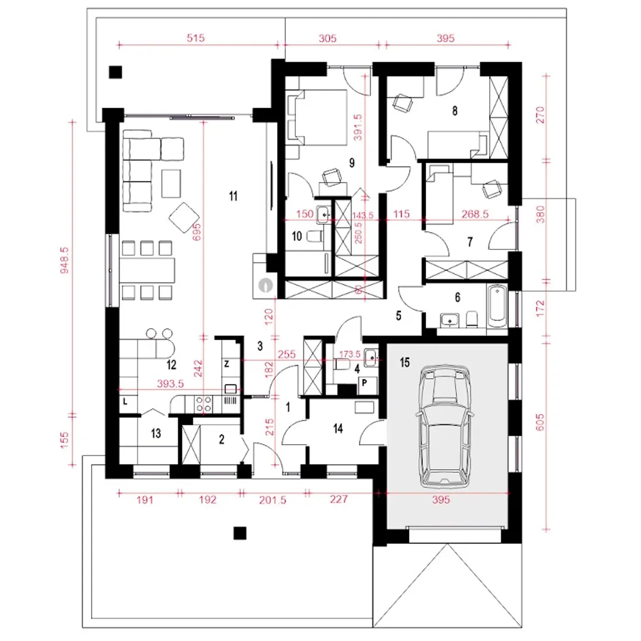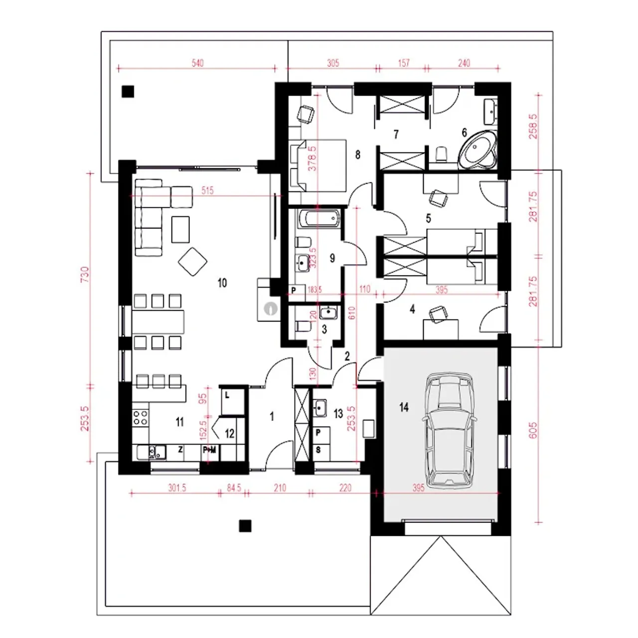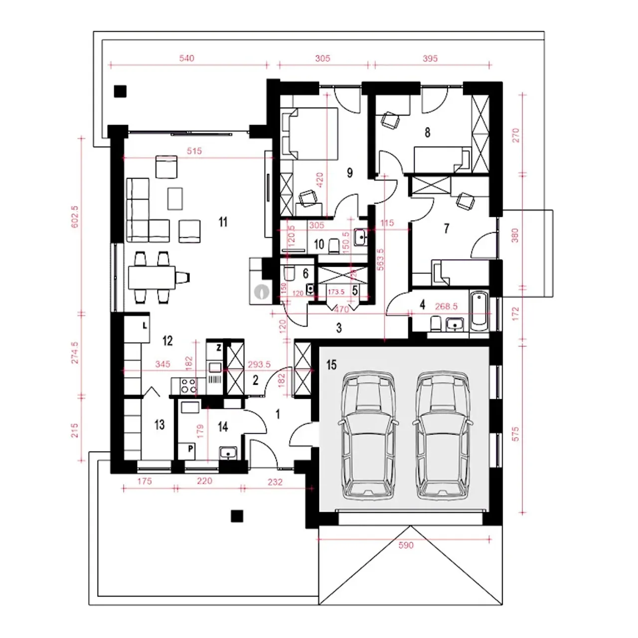 Wypełnij formularz i otrzymaj rysunki w pdf z dokładnymi wymiarami budynku i pomieszczeń (długość, szerokość, wysokość) dla projektu Melisa II z garażem 1-st. A