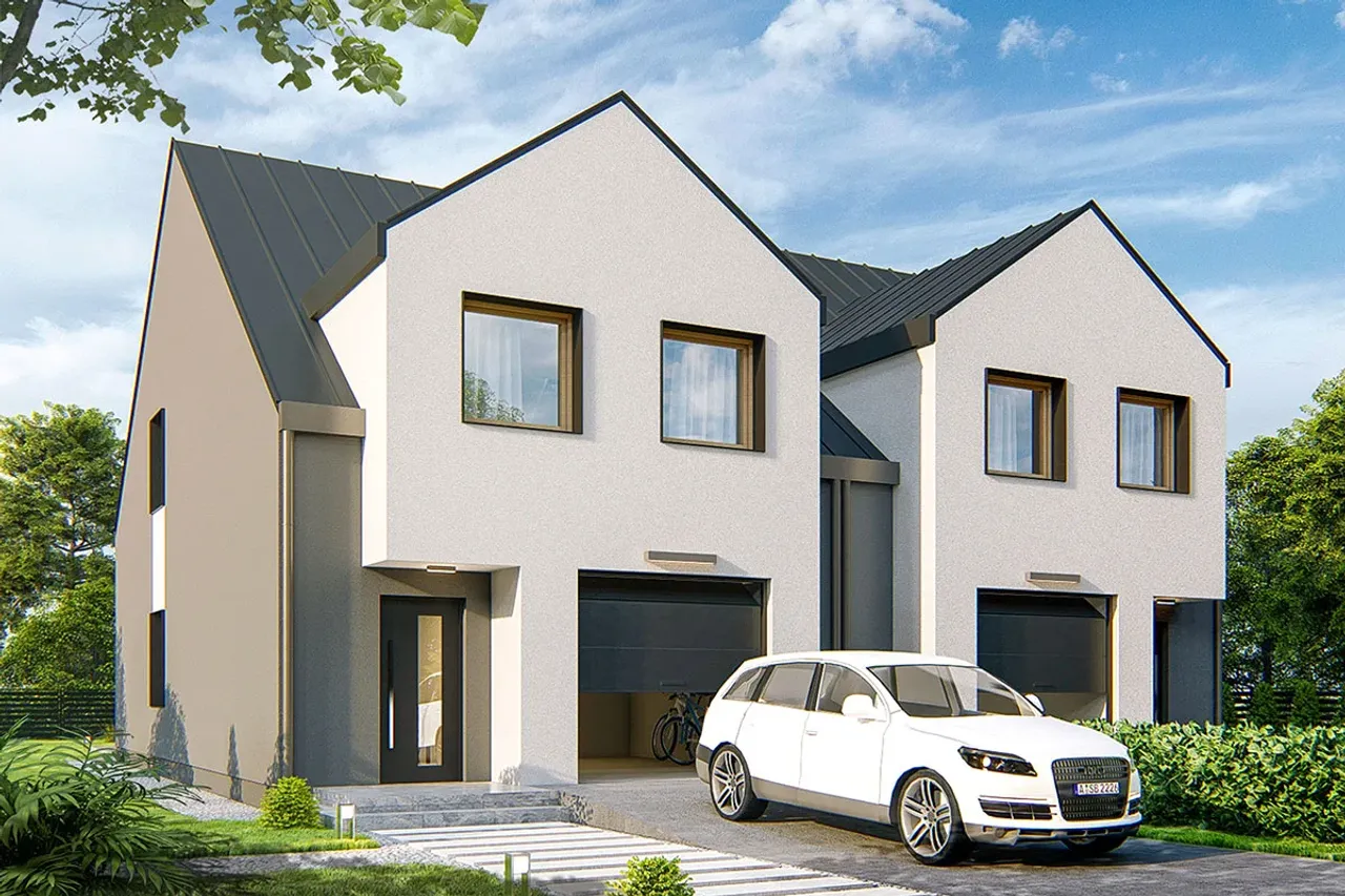 Projekt domu Melodia A1 - segment lewy to prawdziwa perła wśród domów segmentowych. Jego unikalny charakter wynika z harmonijnej kombinacji nowoczesnej estetyki z funkcjonalnością. Płaski dach i przestrzenne tarasy tworzą idealne warunki do rodzinnego relaksu i rozrywki na świeżym powietrzu, a jasna elewacja doskonale komponuje się z otoczeniem. Wewnątrz, otwarty układ pomieszczeń zapewnia swobodny przepływ między strefami, umożliwiając wszystkim członkom rodziny wspólne spędzanie czasu, a zarazem zapewniając miejsce do osobistej regeneracji. Projekt Melodia A1 jest po prostu bezbłędny dla tych, którzy poszukują domu, który będzie równie praktyczny, co inspirujący. Idealnie odpowiada na potrzeby dynamicznie żyjących rodzin, które cenią sobie komfort i styl.